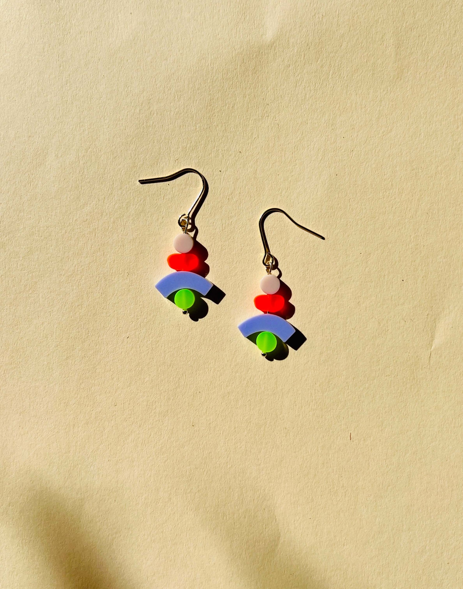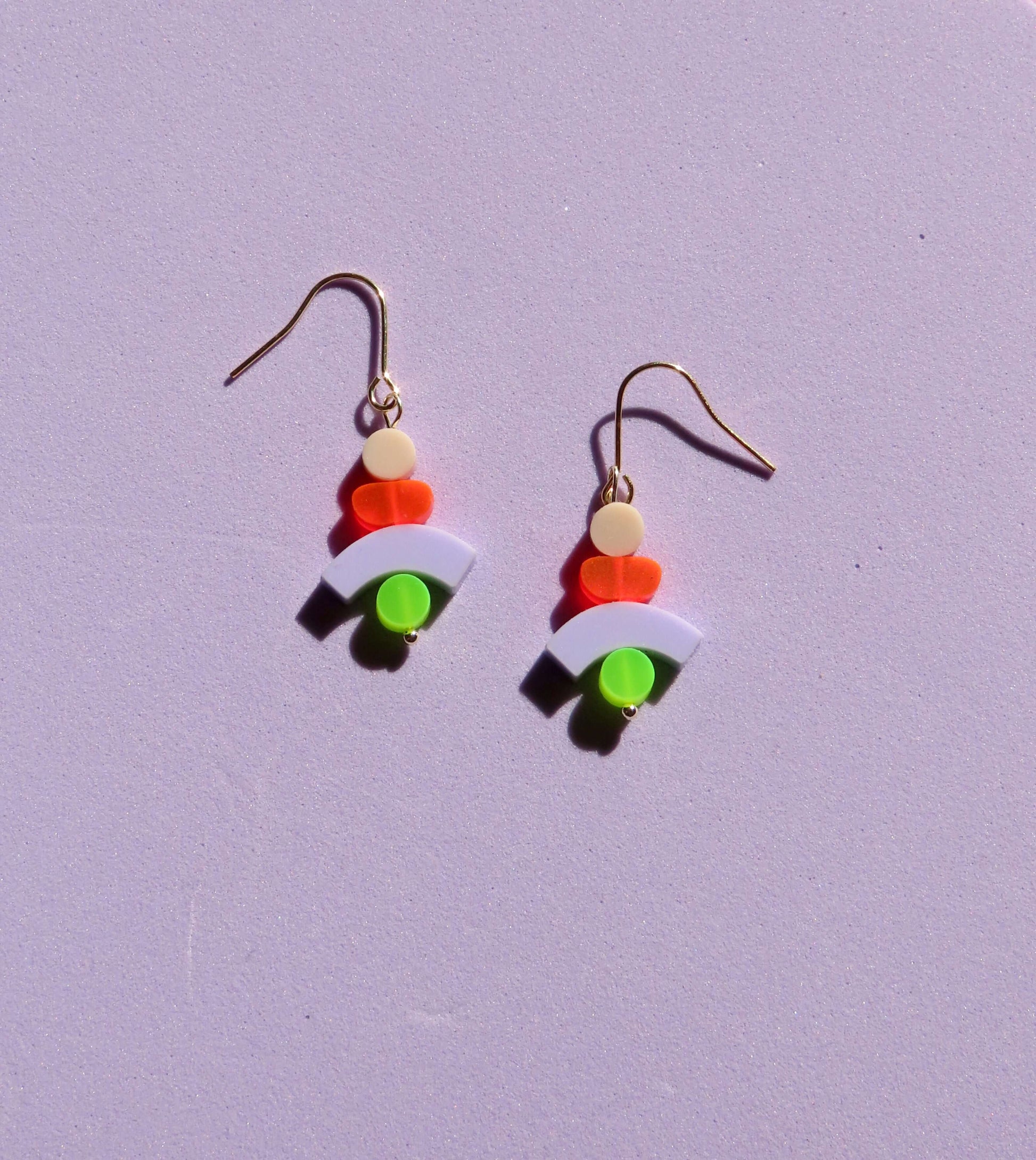 Unsere Cairns Ohrringe sind ein farbenfrohes Statement und von der Natur inspiriert, denn Cairns nennt man auch die kleinen Steinhaufen, welche man oft am Wegesrand findet.