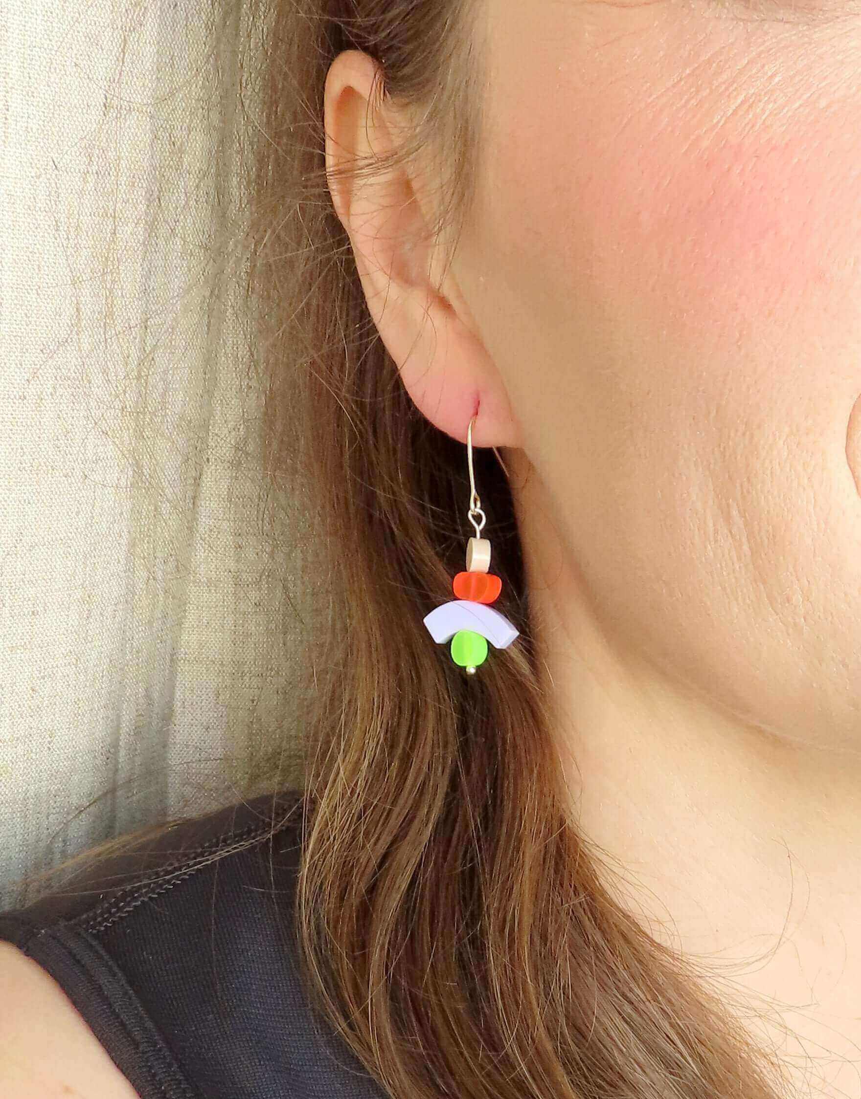 Unsere Cairns Ohrringe sind ein farbenfrohes Statement und von der Natur inspiriert, denn Cairns nennt man auch die kleinen Steinhaufen, welche man oft am Wegesrand findet.