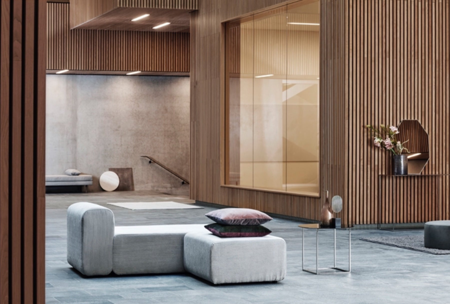 Stylisches Liegesofa der neuen Polstermöbelkollektion Lake von Broste Copenhagen. Es ist aus pflegeleichtem, soften Polyesterripp in coolem, nordischen Design gefertigt. Passt zu vielen Einrichtungsstilen und gibt jedem Raum eine besondere Note. Die beiden Grautöne sind edel und breit kombinierbar.