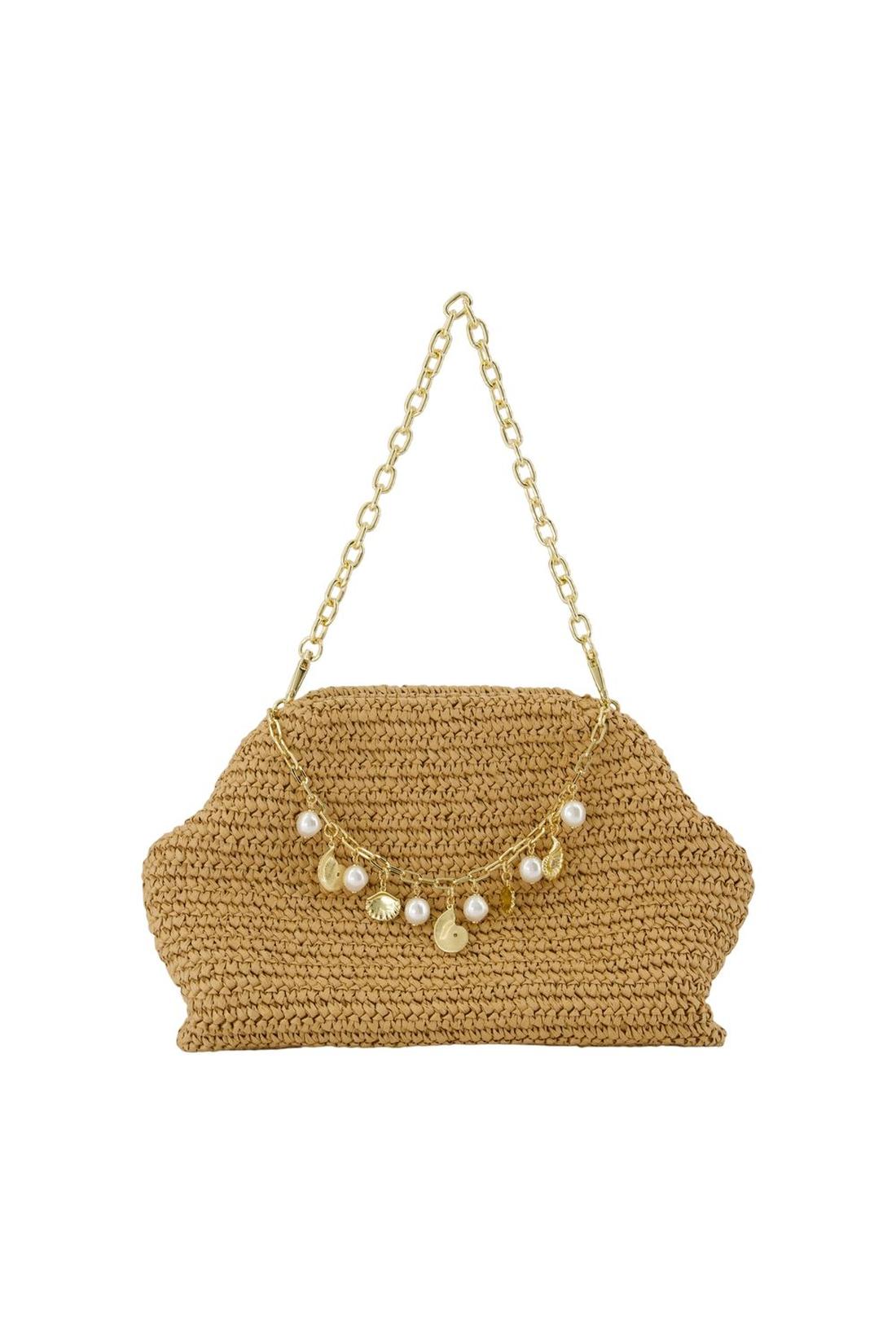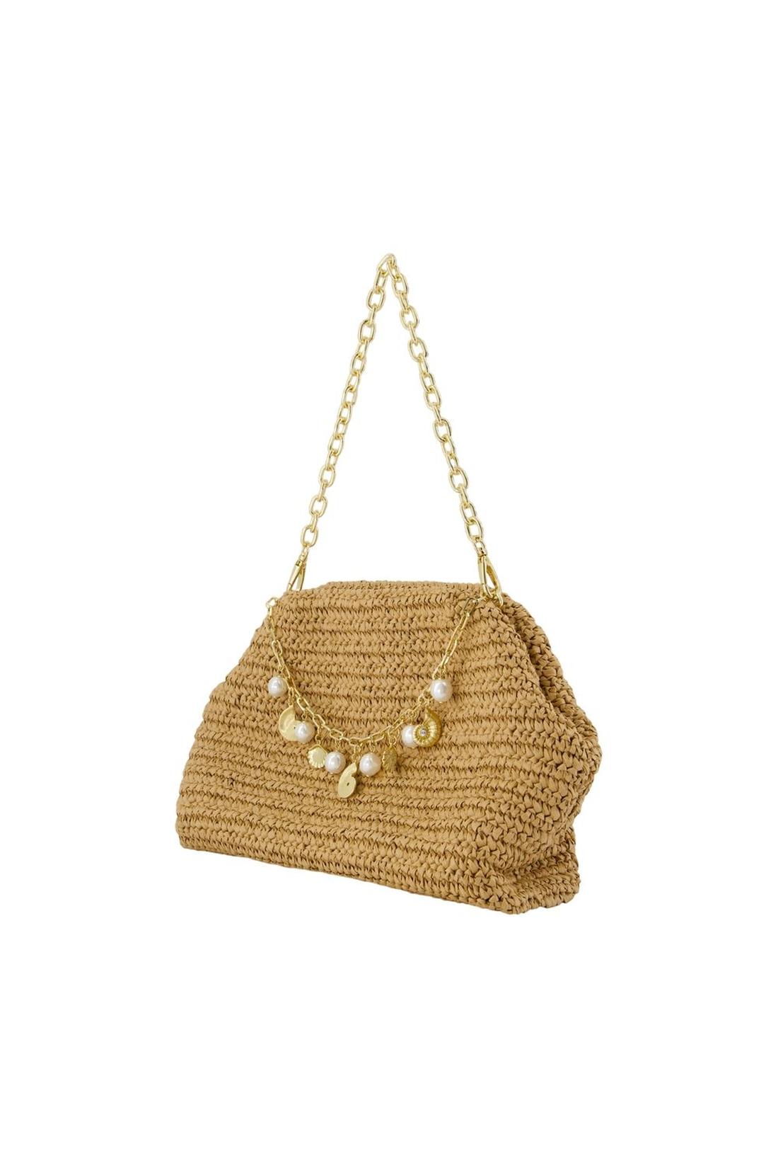 Charm Schultertasche - SELF PORTRAIT - Raphia - Braun