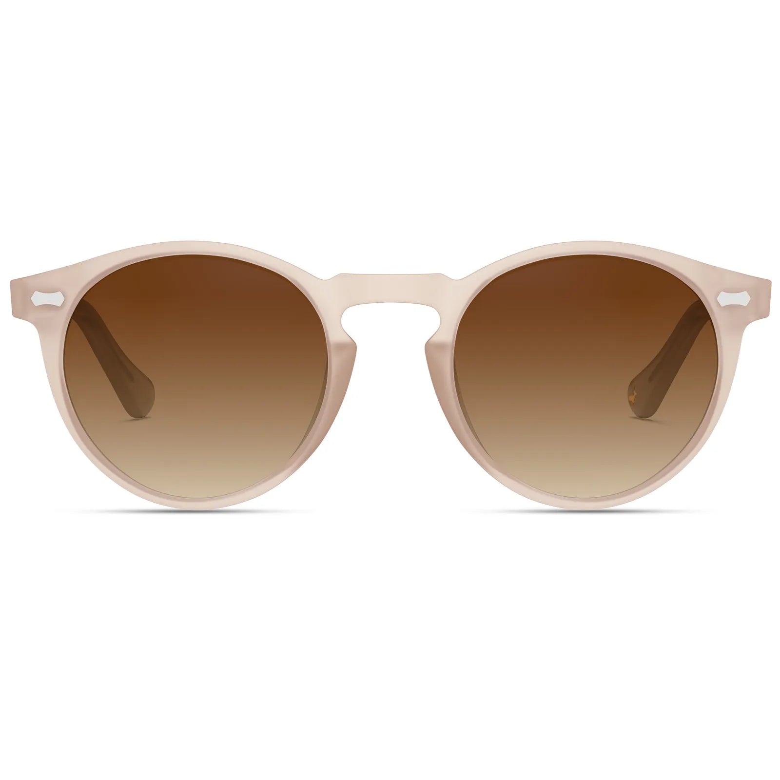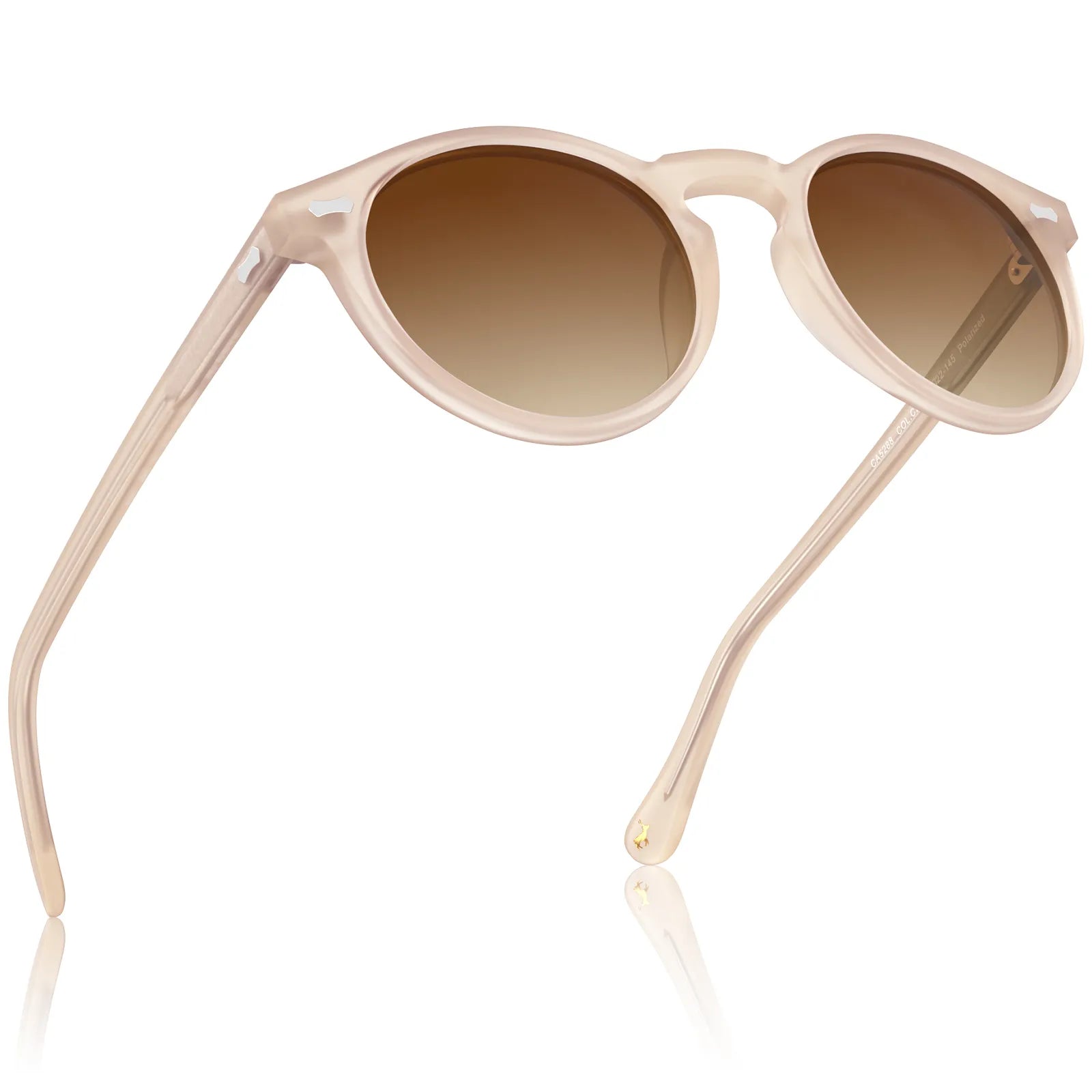 A modern interpretation of vintage design: With sleek contours for an active lifestyle, CARFIA round women's sunglasses are well-compatible with everyday clothes and can be the perfect decoration. Product Size - Lens width: 48 mm, Lens height: 43 mm, Bridge: 22 mm, Arm: 145 mm, Frame width: 138 mm.