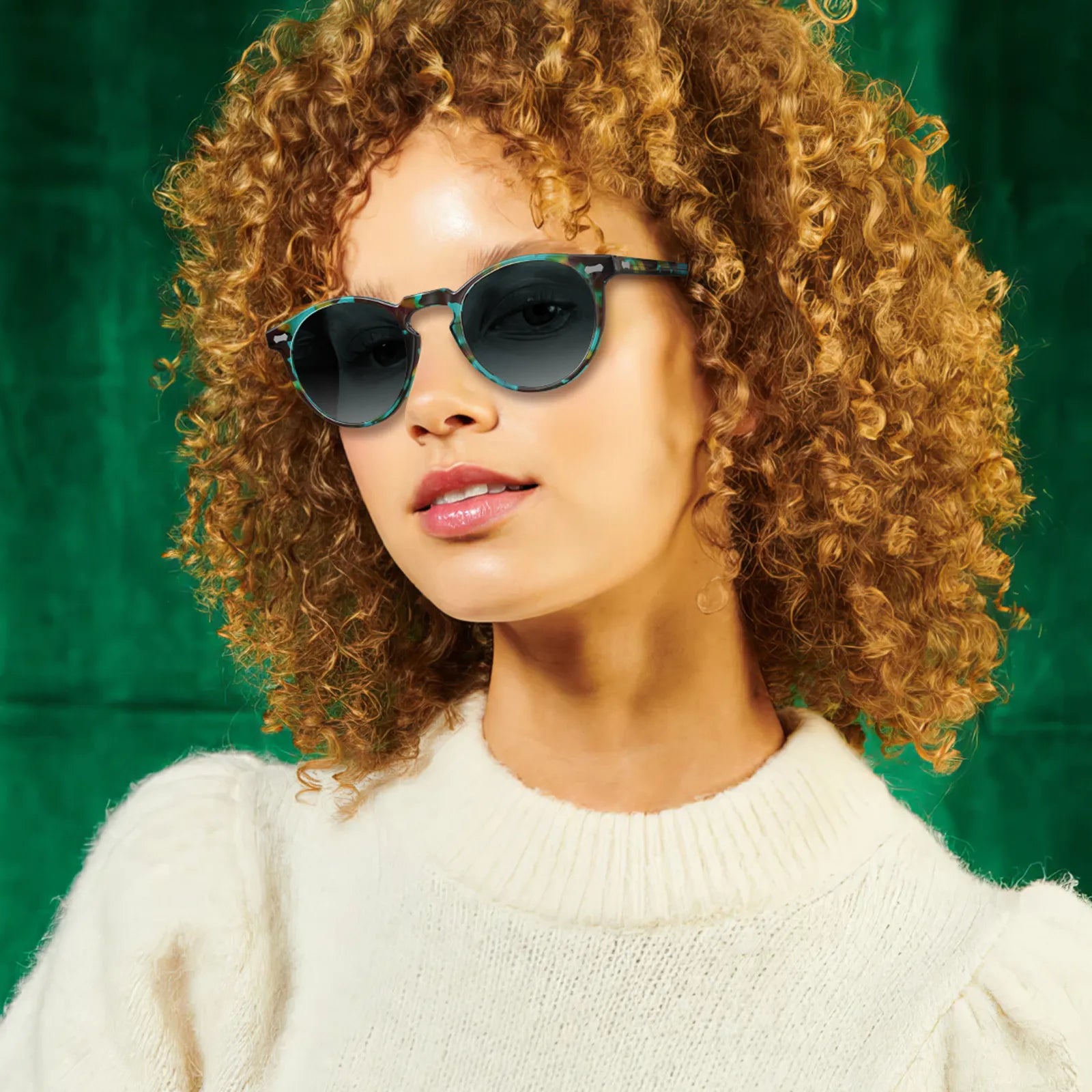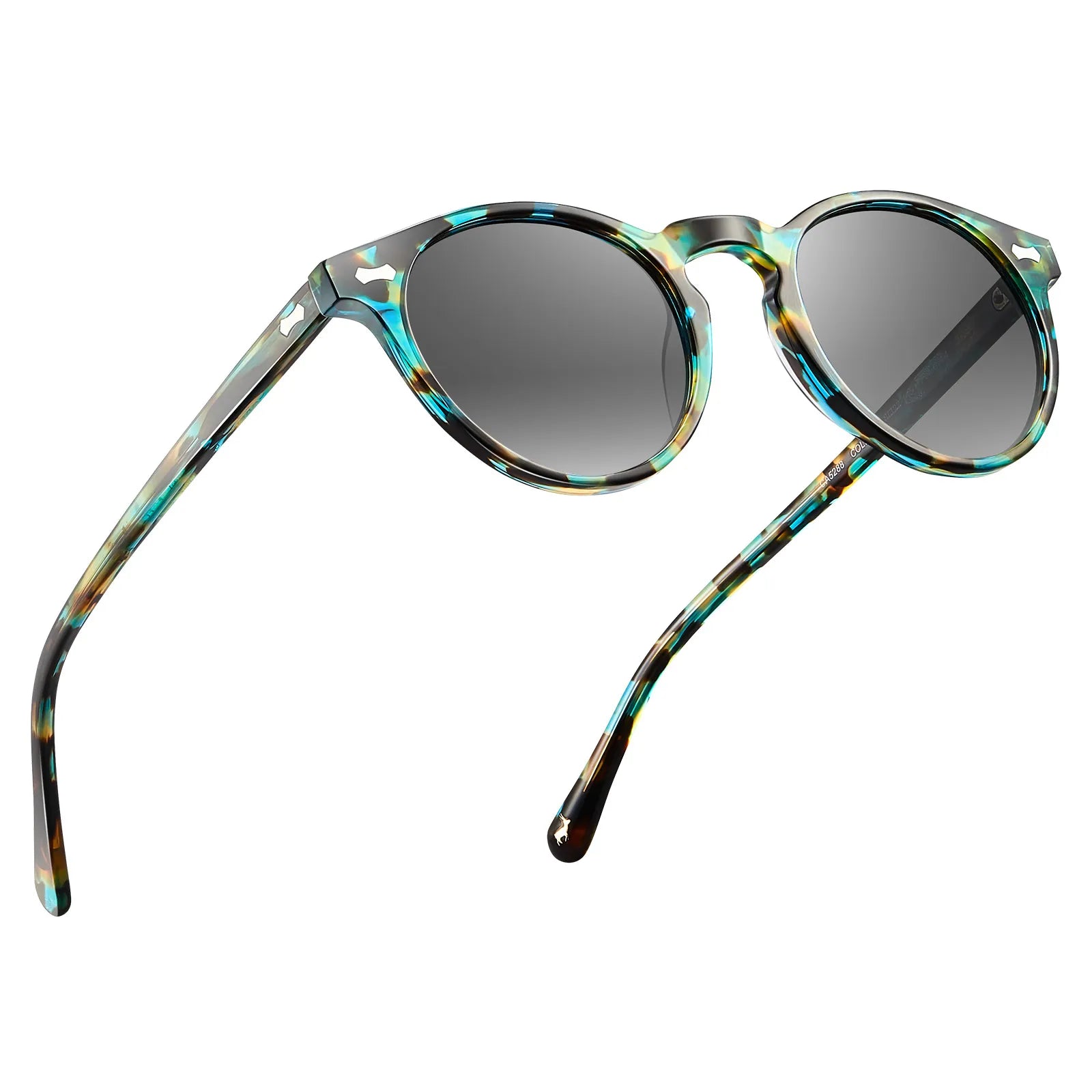 A modern interpretation of vintage design: With sleek contours for an active lifestyle, CARFIA round women's sunglasses are well-compatible with everyday clothes and can be the perfect decoration. Product Size - Lens width: 48 mm, Lens height: 43 mm, Bridge: 22 mm, Arm: 145 mm, Frame width: 138 mm.