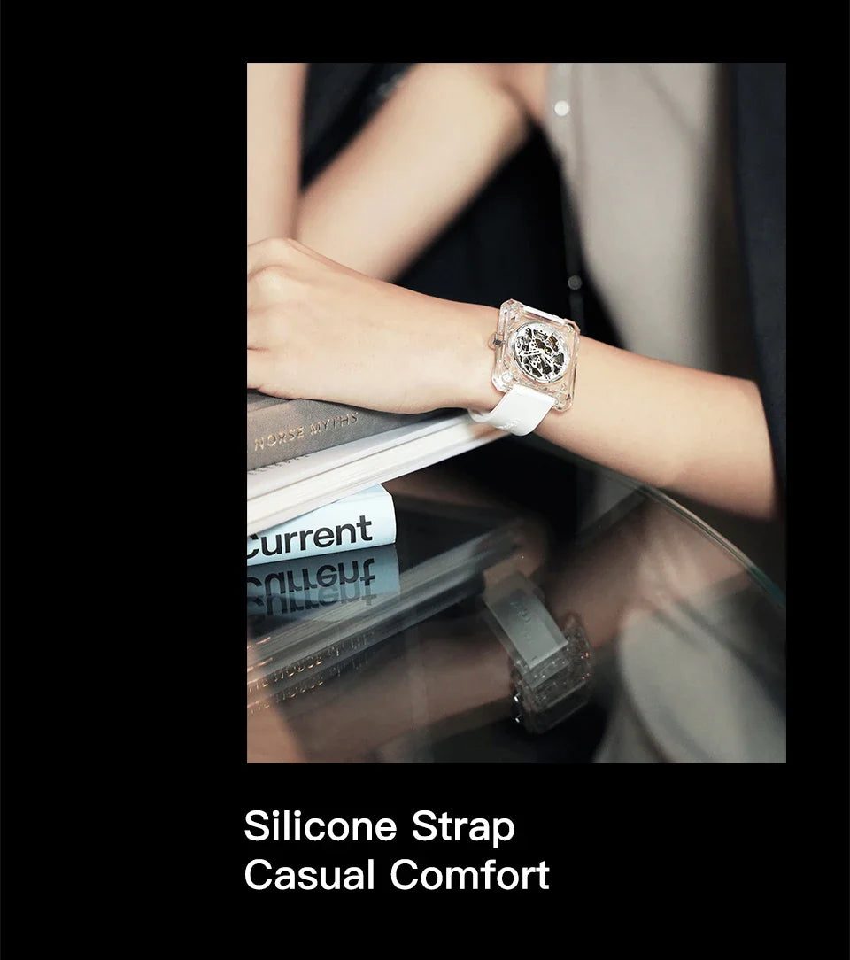 Transparent Skeleton Dial: Exquisite see-through case that puts the automatic movement on full display.