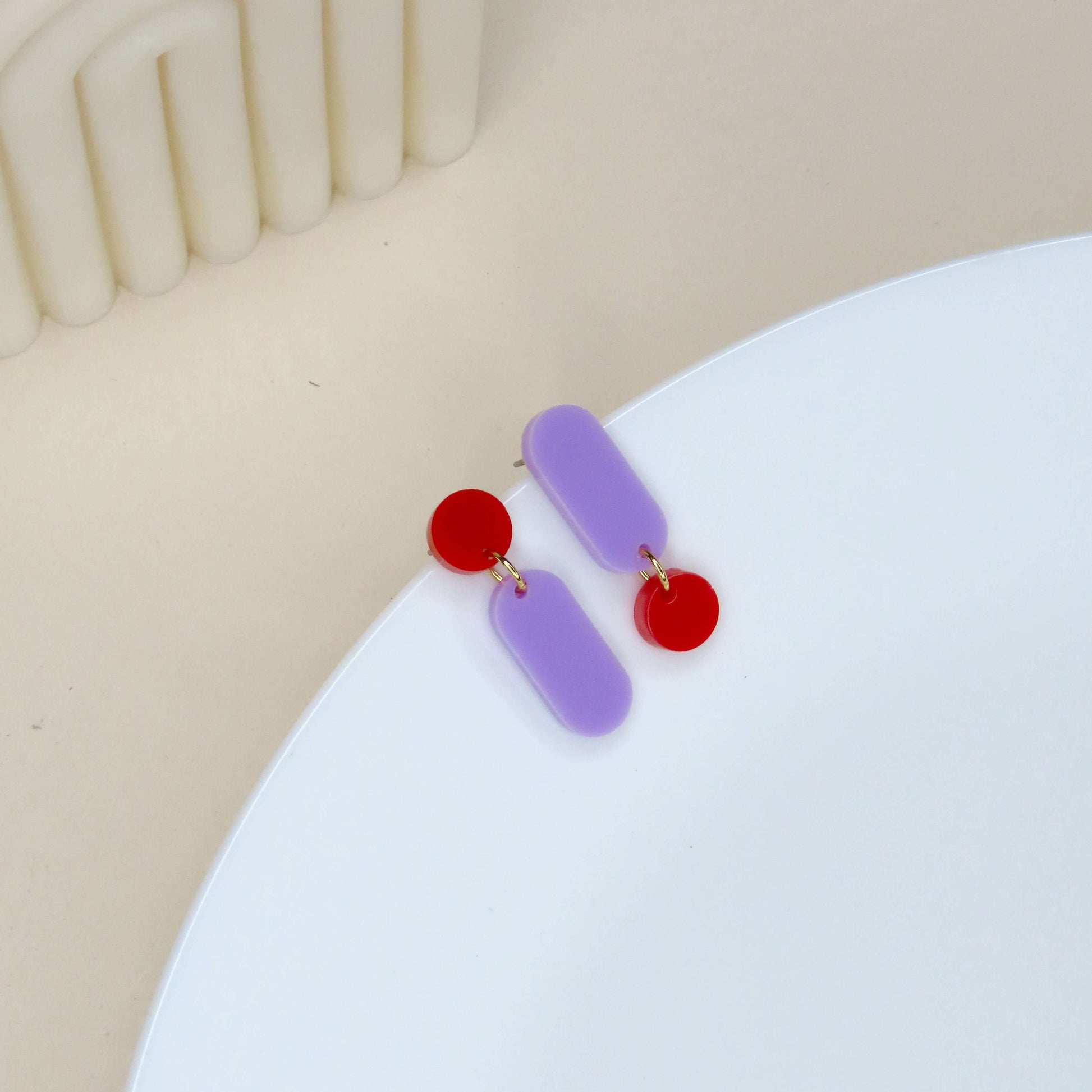 Diese Ohrringe punkten mit ihrer ungleichen Form – asymmetrisch, stylish und voll im Trend. Rot verleiht Energie, Flieder ist charmant und leicht.