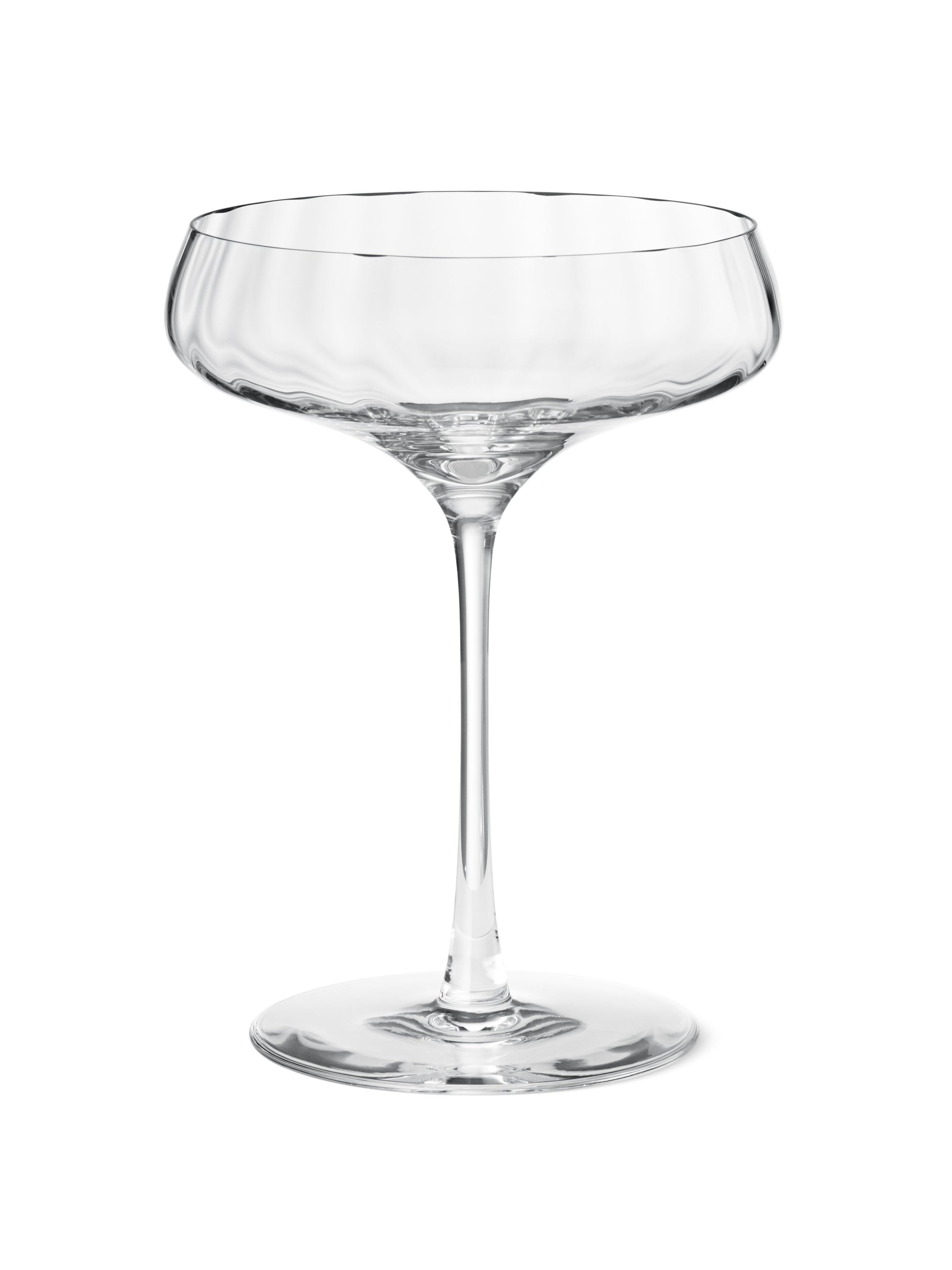 Die geriffelten und geometrischen Linien, die charakteristisch für die Designsprache von Sigvard Bernadotte sind, finden sich auch bei diesen eleganten Cocktailgläsern als wunderschönes Detail. Die Gläser sind aus Kristallglas und eignen sich perfekt zum Servieren von Cocktails bis hin zu Sekt und Prosecco – ein elegantes Design für jeden festlichen Moment. Form und Funktion in Kombination sind ein echtes Zeichen für gutes skandinavisches Design!