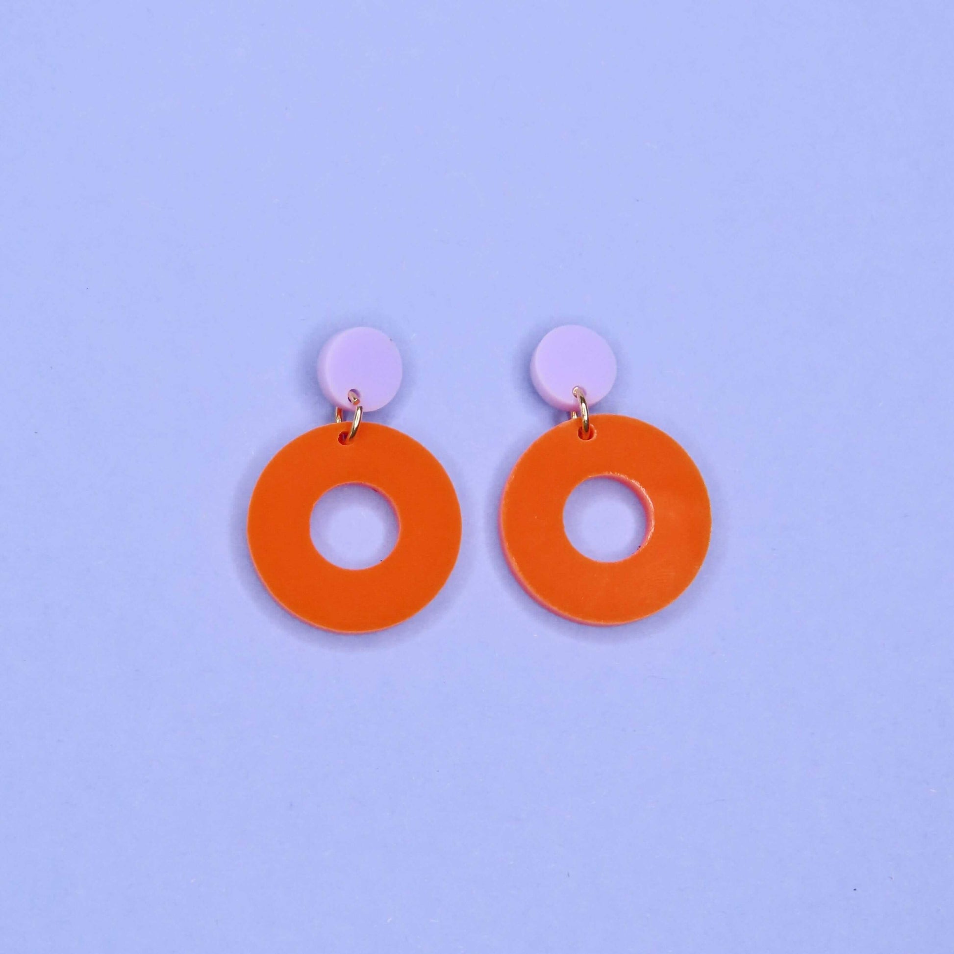 Knalliges Orange trifft sanftes Flieder – diese Ohrstecker sind der perfekte Mix aus Mut und Leichtigkeit.