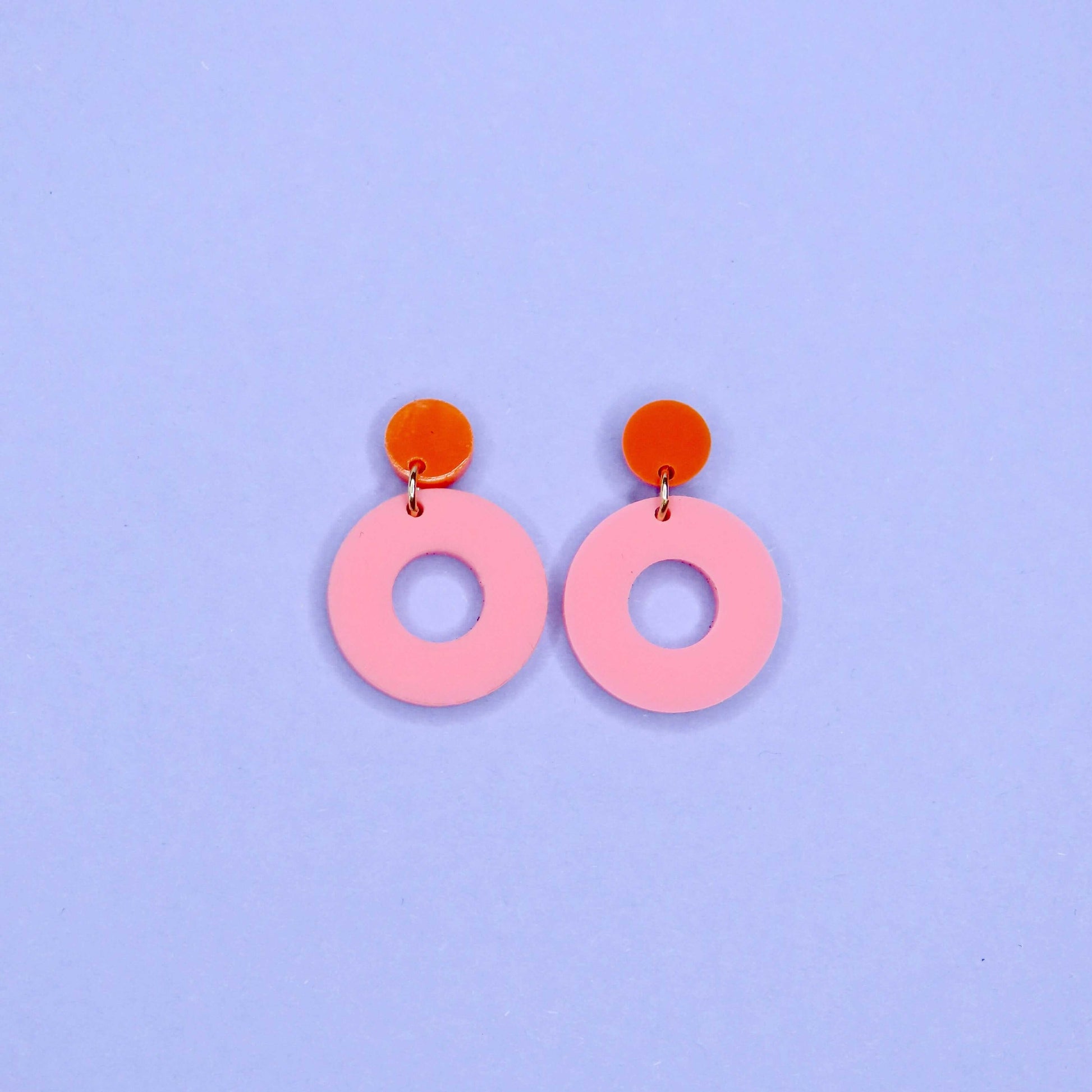 Knalliges Rosa trifft auf leuchtendes Orange – diese Ohrringe sind pure Sommerlaune! Die grafische runde Donut-Form macht sofort gute Laune und bringt Farbe in jedes Outfit. Dank der Edelstahlstecker sind sie nicht nur stylisch, sondern auch super hautverträglich. Handgemacht aus hochwertigem Acryl und ausgestattet mit robusten, gut verträglichen Edelstahlsteckern, sind sie nicht nur ein Blickfang, sondern auch super angenehm zu tragen.