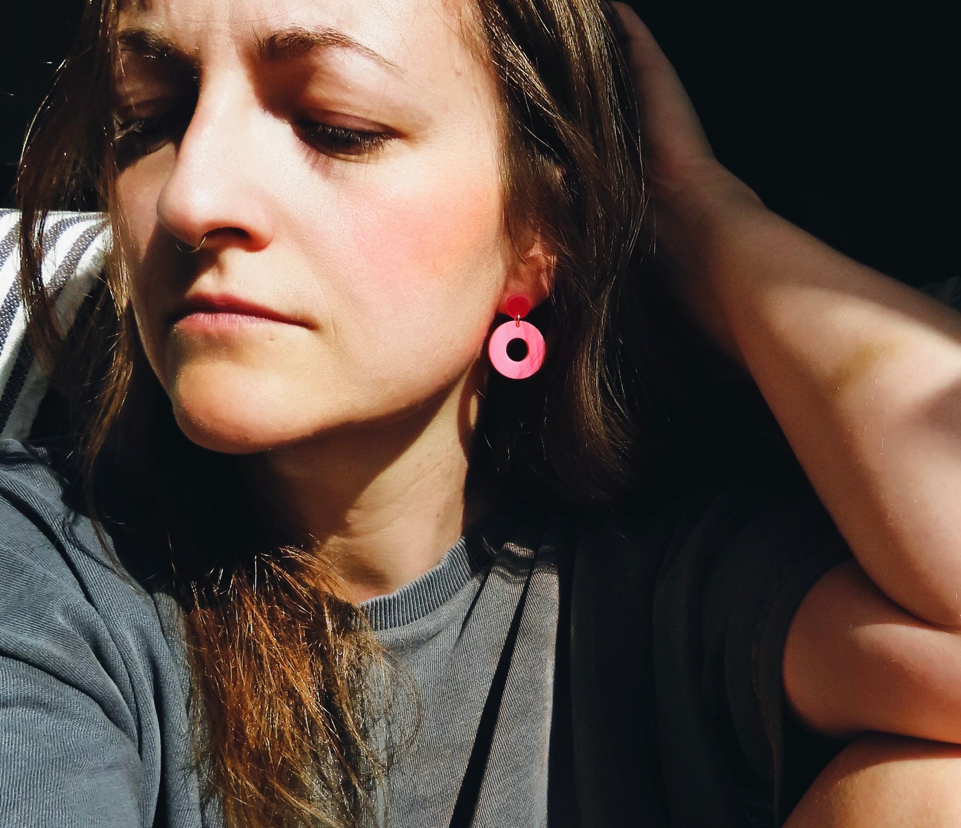 Die Colorblock Circle Ohrstecker spielen mit einem spannenden Kontrast: Ein kleiner, zarter Kreis in Rosa sitzt direkt am Ohr und bildet den femininen, sanften Auftakt. Daran hängt ein größerer Kreis in kräftigem Orange, der durch seine offene Mitte direkt auffällt. Plakativ, mutig und voller Energie.