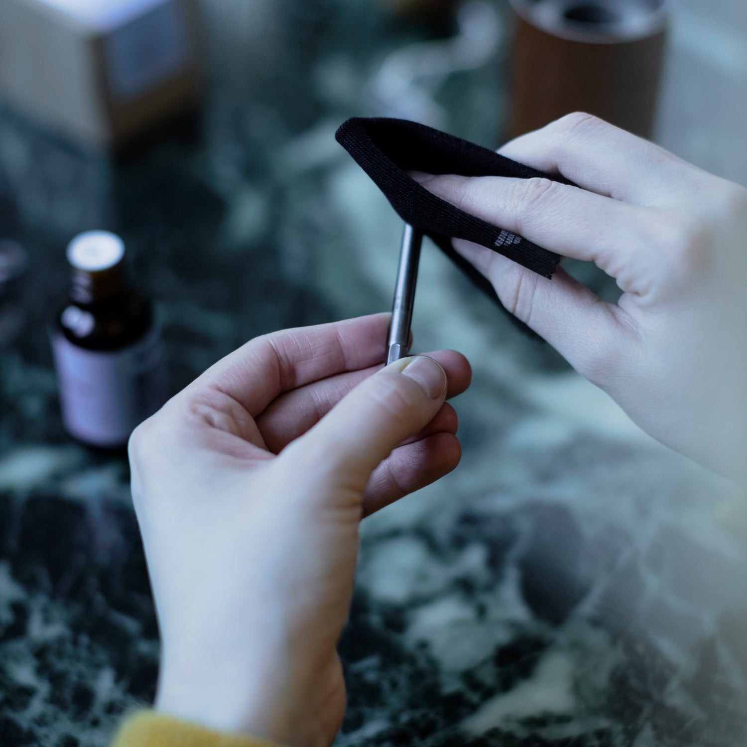 - Apply a small amount of the Burr Care Fluid to a cloth.