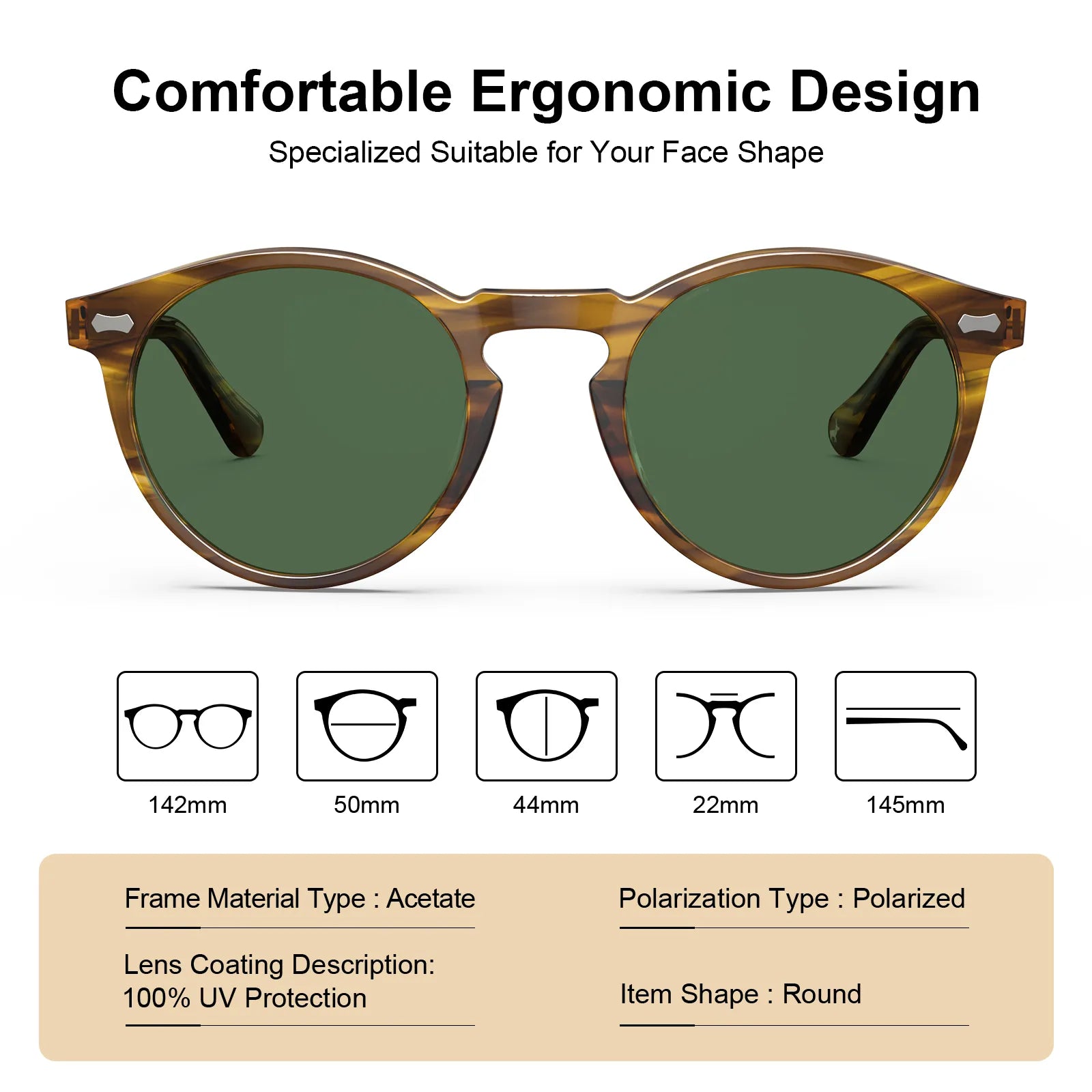 - High-End Polarized Men's Sunglasses - Hypoallergenic Hand-Crafted Acetate Frame for lightweight durability and all-day comfort, Lustrous, Skin-friendly, without pressure for nasal bridge or head. They are not cheap plastic frames nor coating patterns, Carfia hand-polished cellulose acetate frames are born with patterns embedded, with a rich color finish, which makes them as excellent as the world's most famous brand.