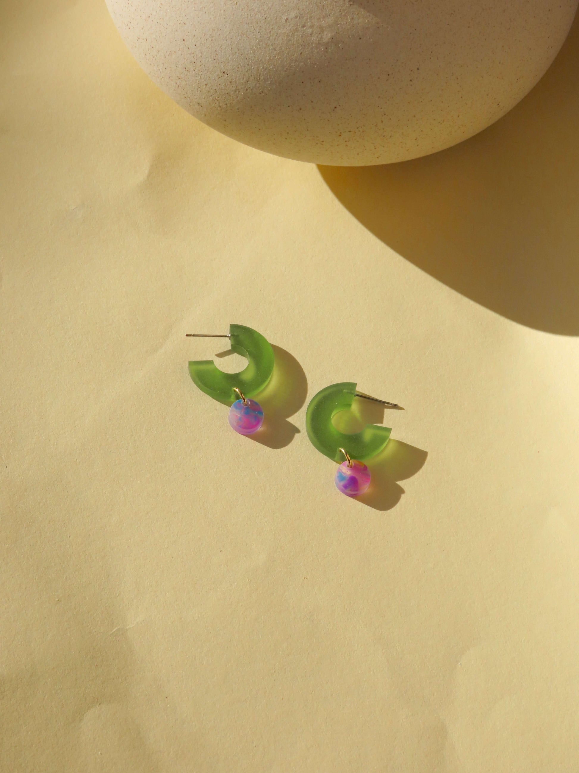 Creolen Silva aus Acryl und Edelstahl in olive und fantasy