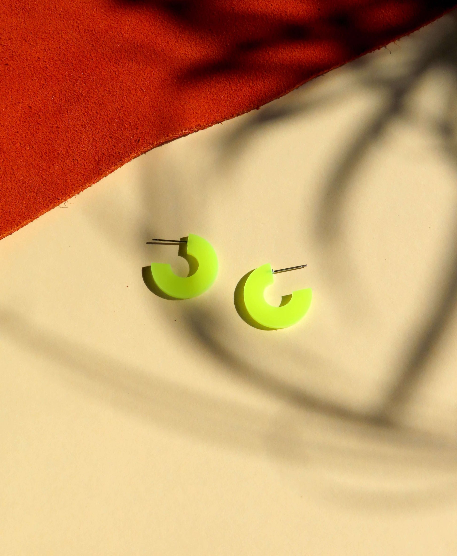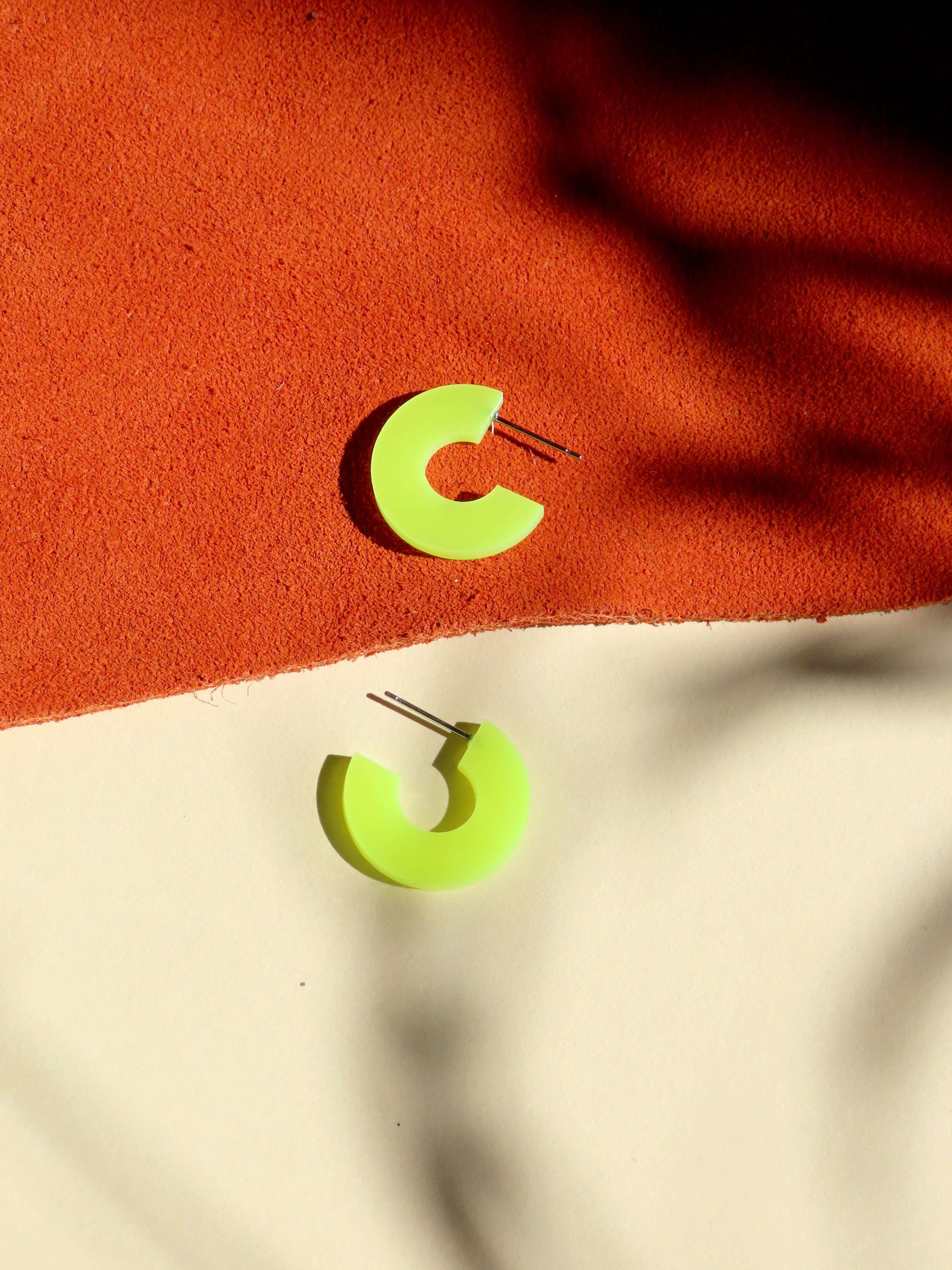Creolen Simmi aus Acryl und Edelstahl in neongelb