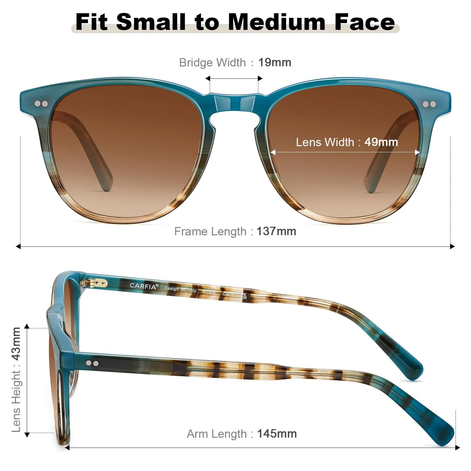 - Retro Women's Polarized Sunglasses - Our best-selling square shape features a defined keyhole design. Constructed with a flexible Italian acetate frame, a shatterproof lens, and a metal wire core, our polarized sunglasses for women enhance durability. With a frame width of 137mm, they are recommended for small to medium-sized faces.