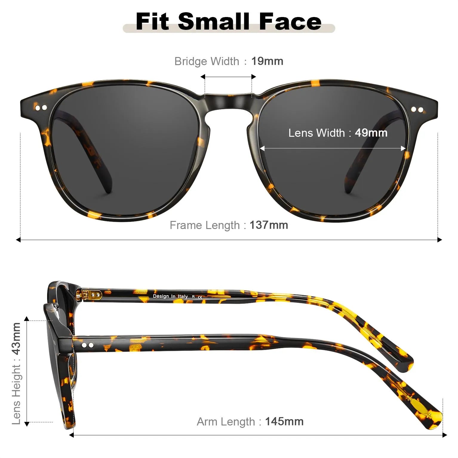 - Retro Women's Polarized Sunglasses - Our best-selling square shape features a defined keyhole design. Constructed with a flexible Italian acetate frame, a shatterproof lens, and a metal wire core, our polarized sunglasses for women enhance durability. With a frame width of 137mm, they are recommended for small to medium-sized faces.