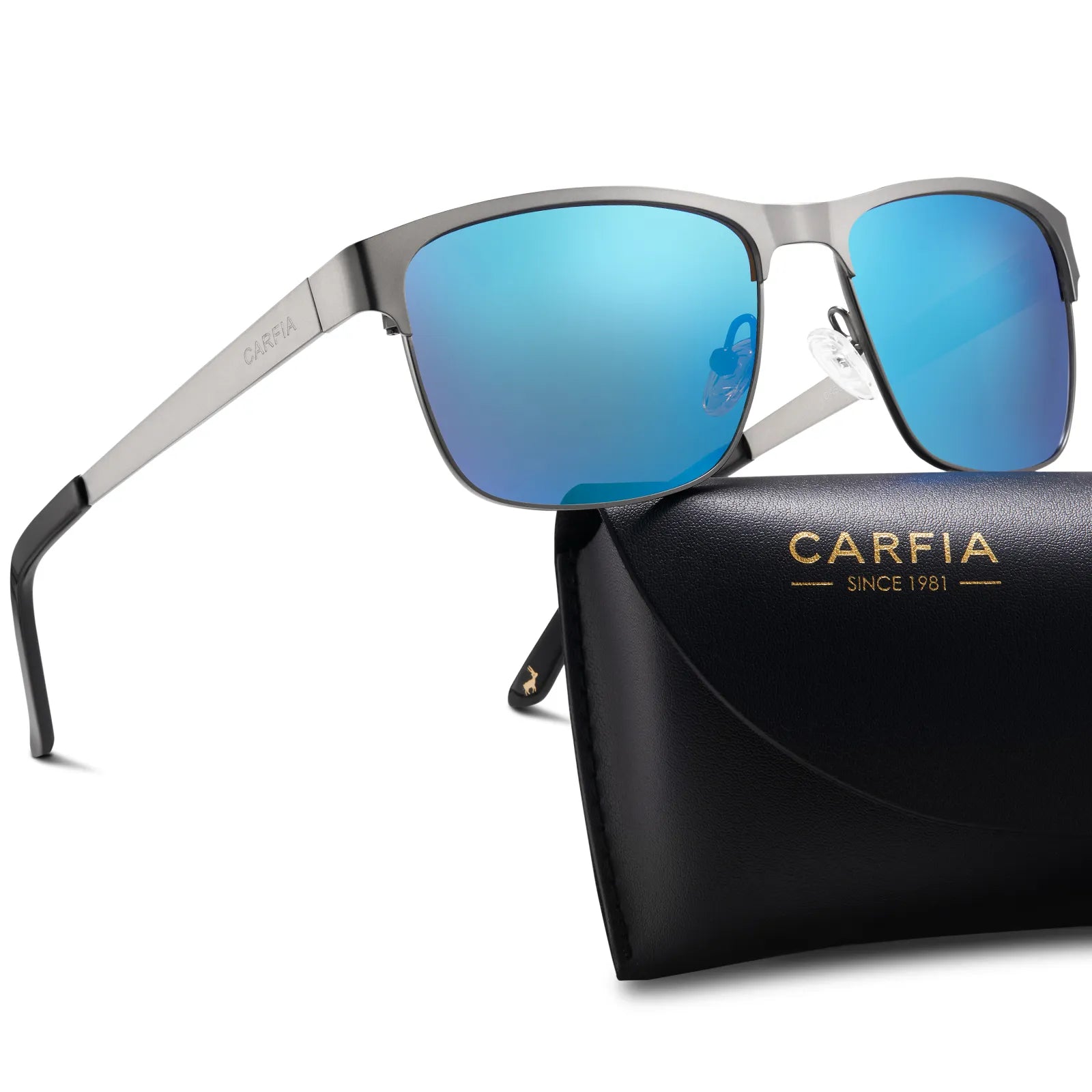 Stylish and Comfortable Metal Sunglasses for Men - The full-rim frame is made from corrosion-resistant metal, and its ergonomic construction makes it feel both sturdy and comfortable. Getting the right fit is crucial for your comfort, protection, and optical performance. CARFIA has included adjustable nose pads and spring hinges that can flex from 90 degrees to 105 degrees, allowing the sunglasses to fit your head nicely.