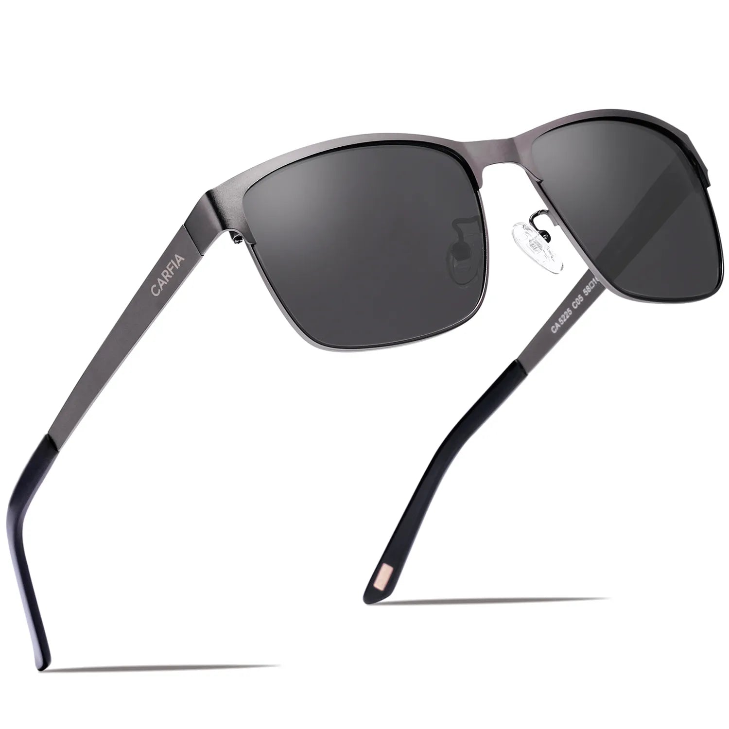 Stylish and Comfortable Metal Sunglasses for Men - The full-rim frame is made from corrosion-resistant metal, and its ergonomic construction makes it feel both sturdy and comfortable. Getting the right fit is crucial for your comfort, protection, and optical performance. CARFIA has included adjustable nose pads and spring hinges that can flex from 90 degrees to 105 degrees, allowing the sunglasses to fit your head nicely.