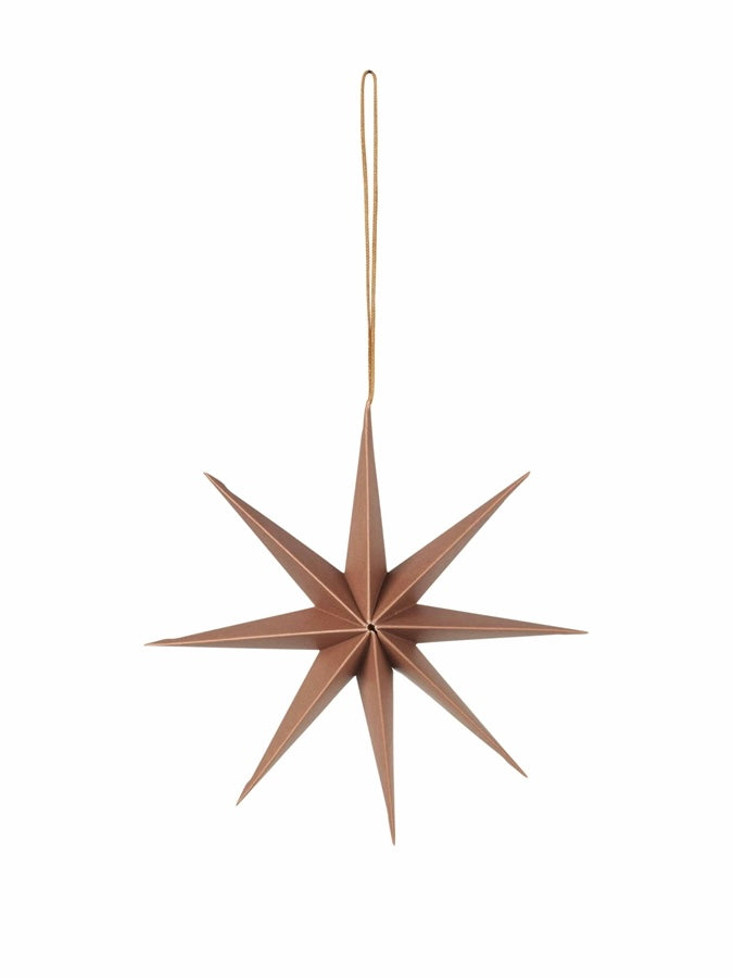 Deko Stern als Anhänger aus kunstvoll gefaltetem Papier. Klassischer Weihnachtsschmuck für das Fenster oder als Dekoration für den Weihnachtsbaum. Der Stern wird zusammengefaltet geliefert und mit einem Magneten nach dem Entfalten zusammengehalten.
