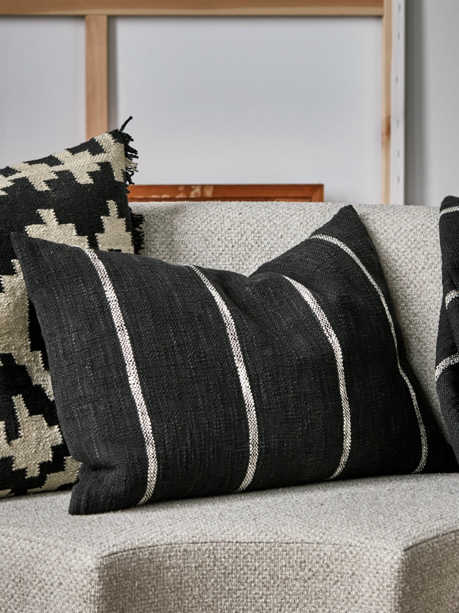 Verleihe deinem Zuhause einen Hauch von Eleganz und Komfort mit diesem handgefertigten Kissenbezug, der ein elegantes Design in schwarz mit cremefarbenen Streifen aufweist. Hergestellt aus weicher Baumwolle, bringt er eine gemütliche Atmosphäre in jeden Raum und harmoniert perfekt mit anderen Wohntextilien.