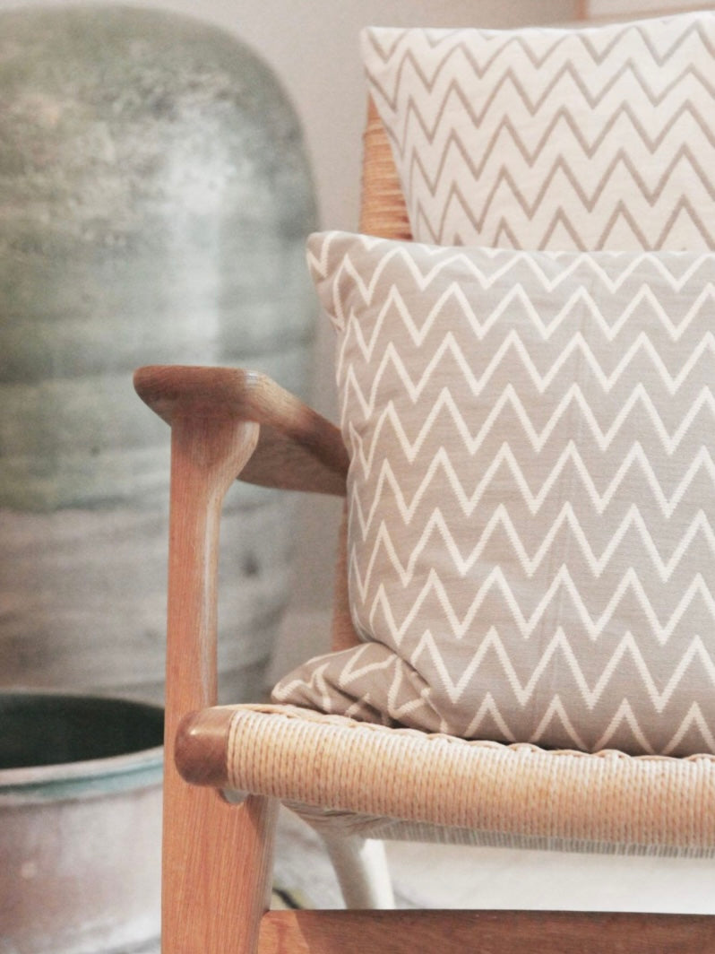 Schlicht elegantes Dekokissen im Zickzack Muster. Die edle Farbkombination passt zu jedem Wohntrend. Ein nordisches Design, das zeitlos und modern bleibt.