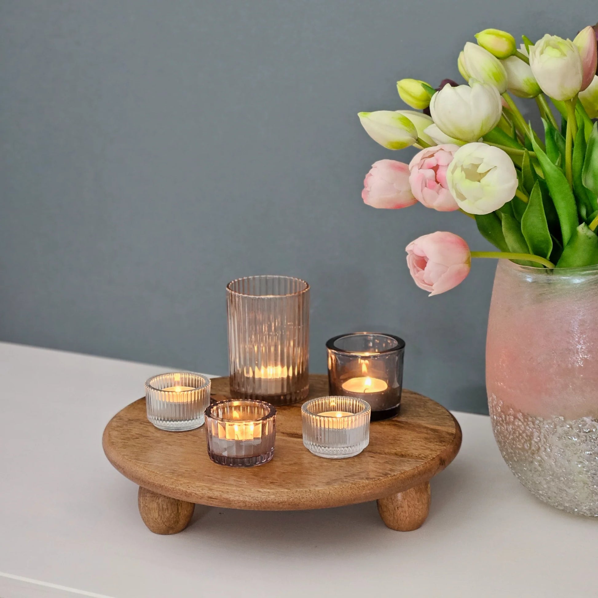 Dekoteller rund auf Füßen Kerzentablett Mangoholz 29 cm Holztablett Blumenhocker Dekorativ