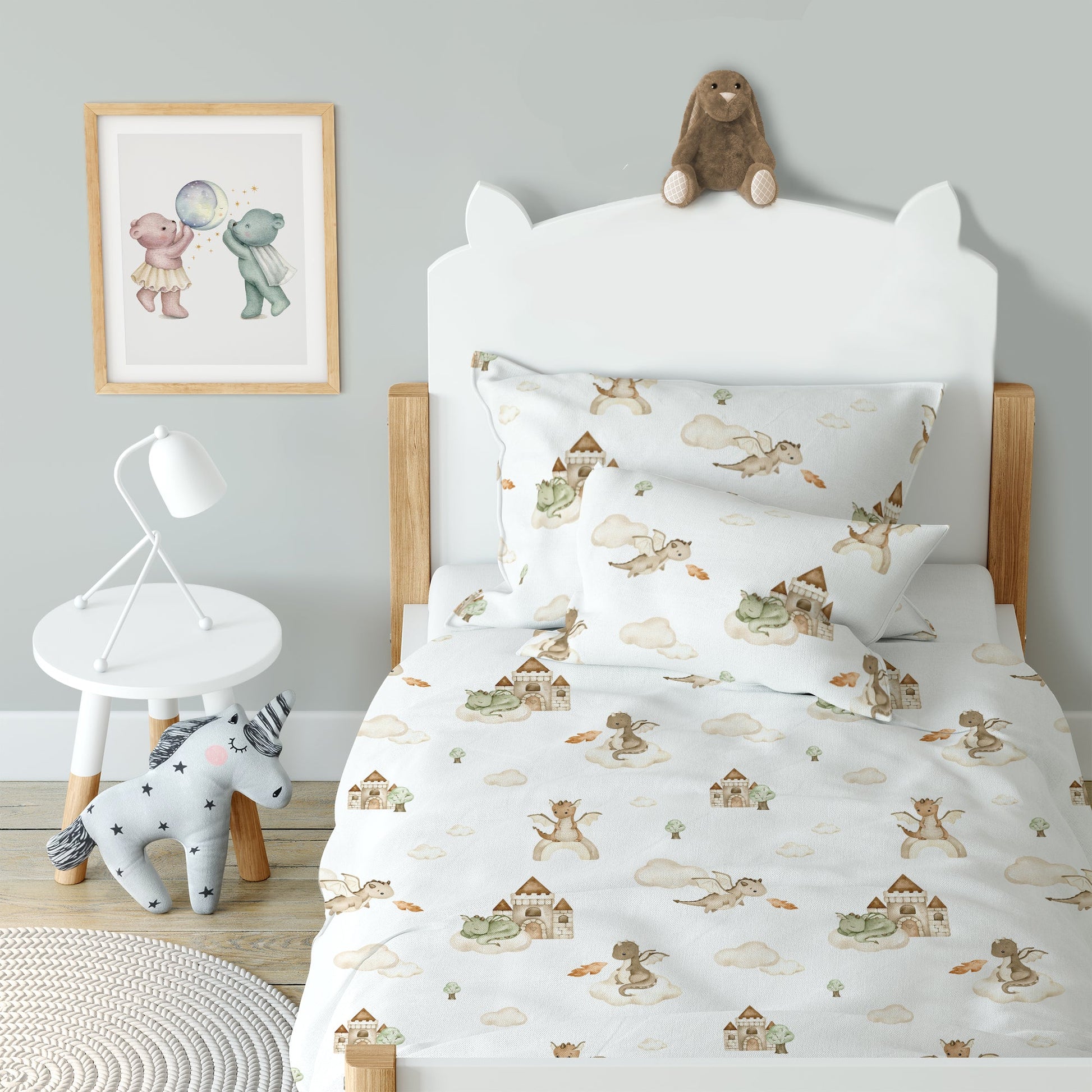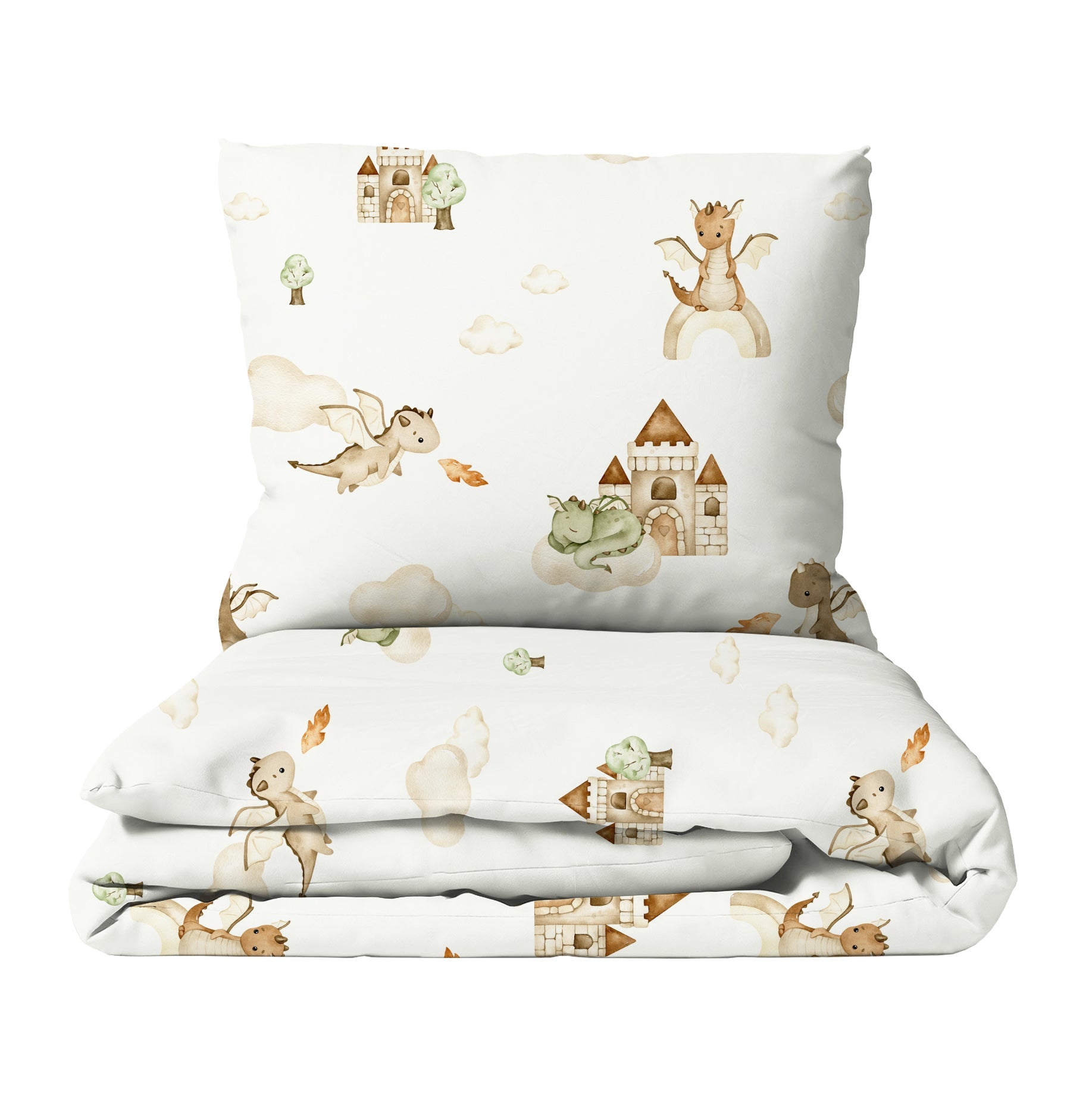 Zauberhaftes Drachenland: Tauche mit "Der kleine Drache" in eine bezaubernde Welt voller Geheimnisse und Wunder ein. Diese kuschelige Bettwäsche entführt deinen kleinen Schatz mit einem Spritzer Drachenmagie in ein farbenfrohes Traumland. Jede Nacht wird zu einer märchenhaften Reise in fantastische Welten, wo Drachen sanft und freundlich sind! Mit seinem liebevoll kreierten Design weckt "Der kleine Drache" die Fantasie und das Herz jedes kleinen Drachenfreundes. Die verspielten, bunten Illustrationen laden zum Träumen ein und zaubern ein Lächeln auf jedes Kindergesicht.