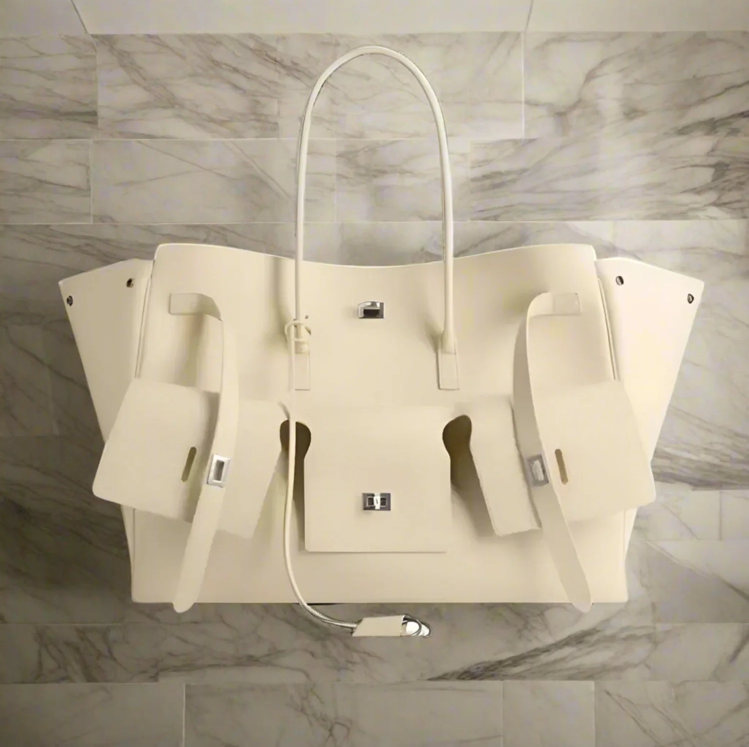 With a bold motorcycle-inspired silhouette, this versatile satchel easily transforms from a shoulder bag to a handbag, making it ideal for daily use, travel, or statement styling.