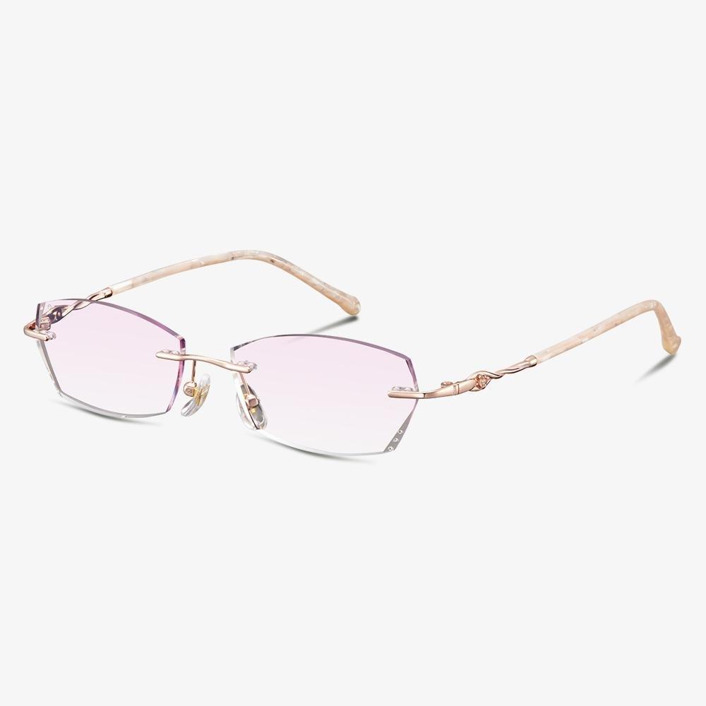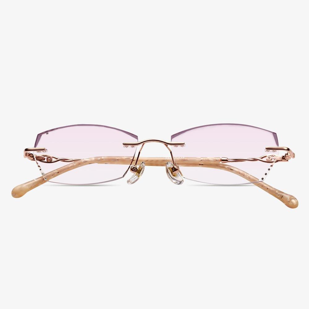 Gold frame rimless glasses prove that classic rimless glasses can also be very fashionable. It has unique geometric rimless lenses, slender lines, and rustic and high-quality metal finishes. Dogwood is very understated, but very elegant. The shiny golden finish adds to the exquisite charm of this frame.