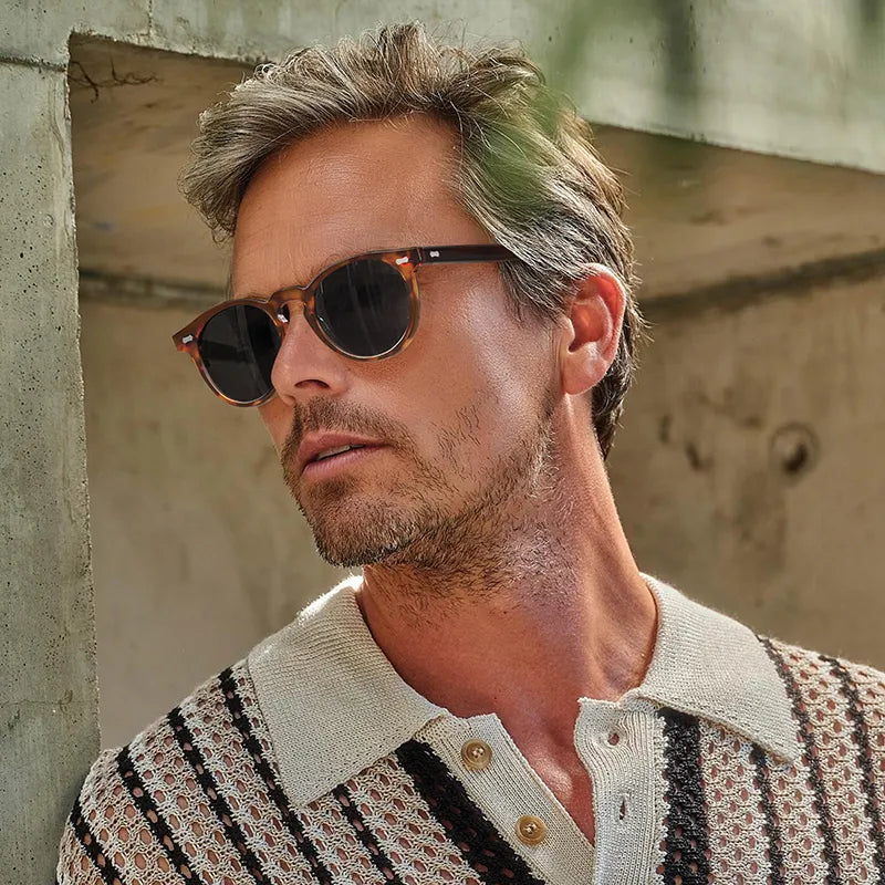- Retro Sunglasses for Men - These CARFIA polarized men's sunglasses come equipped with reinforced five-barrel metal hinges, hand-inlaid logo plaques, and thicker temples with a wire core. This enhances the overall strength of the frame, preventing the screws from falling out and the temples from loosening. Enjoy the style and craftsmanship of our circular sunglasses for men, which are built to last and will accompany you on every journey under the sun!