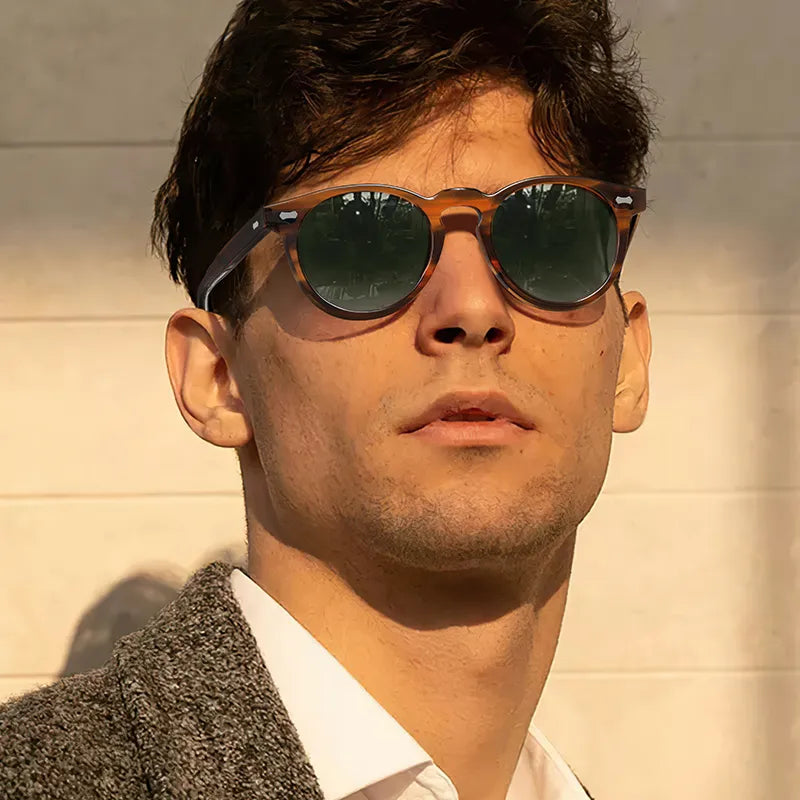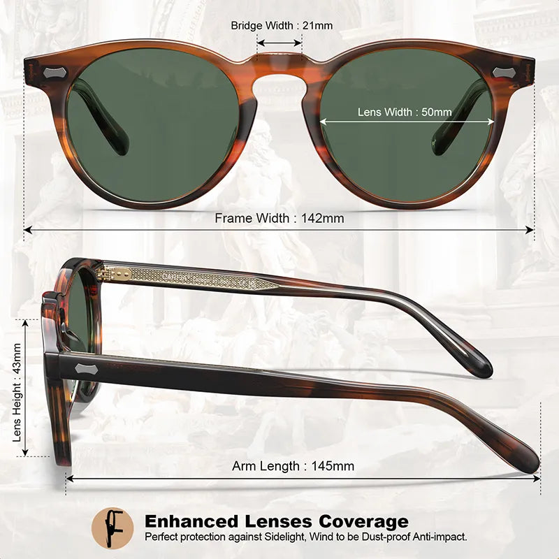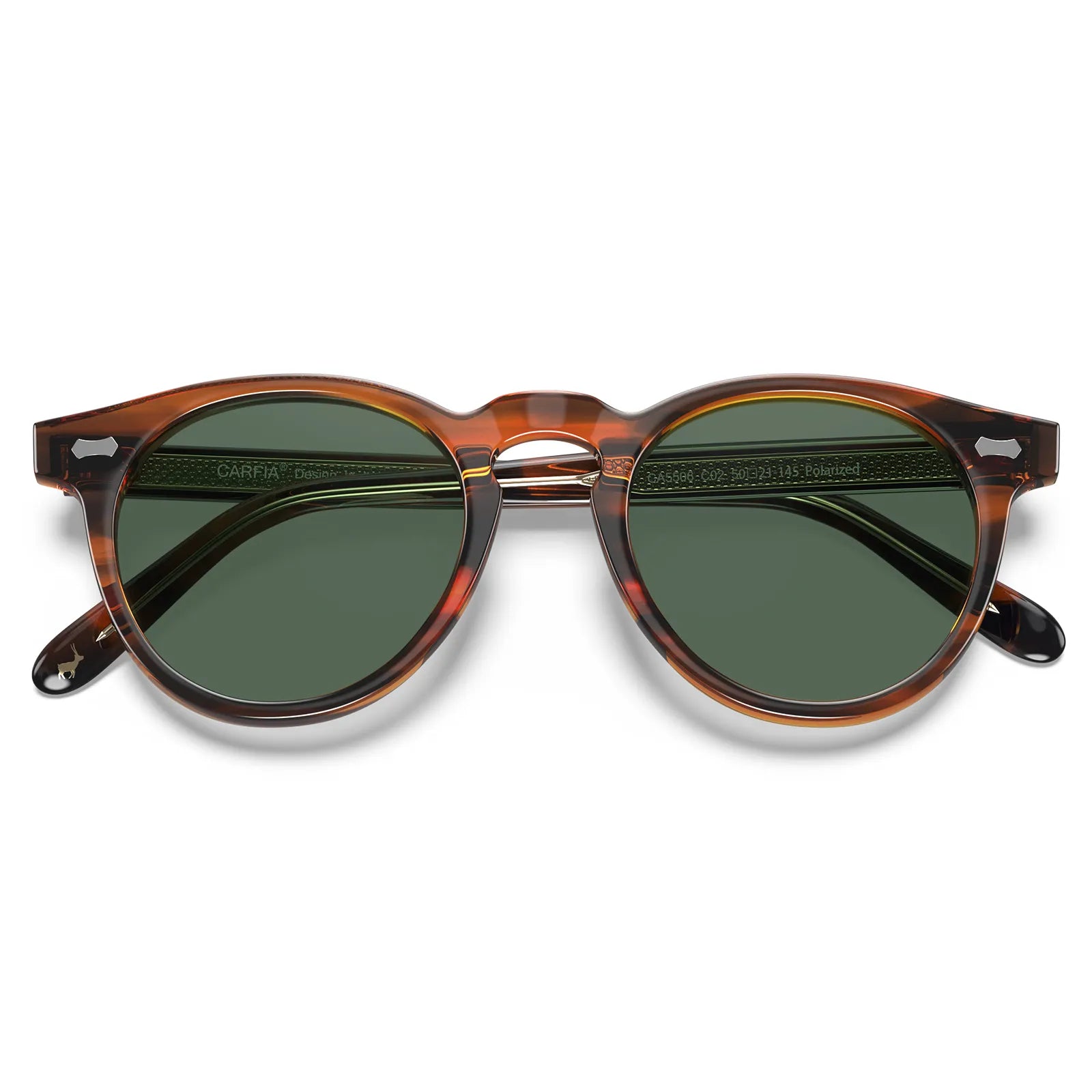 - Retro Sunglasses for Men - These CARFIA polarized men's sunglasses come equipped with reinforced five-barrel metal hinges, hand-inlaid logo plaques, and thicker temples with a wire core. This enhances the overall strength of the frame, preventing the screws from falling out and the temples from loosening. Enjoy the style and craftsmanship of our circular sunglasses for men, which are built to last and will accompany you on every journey under the sun!