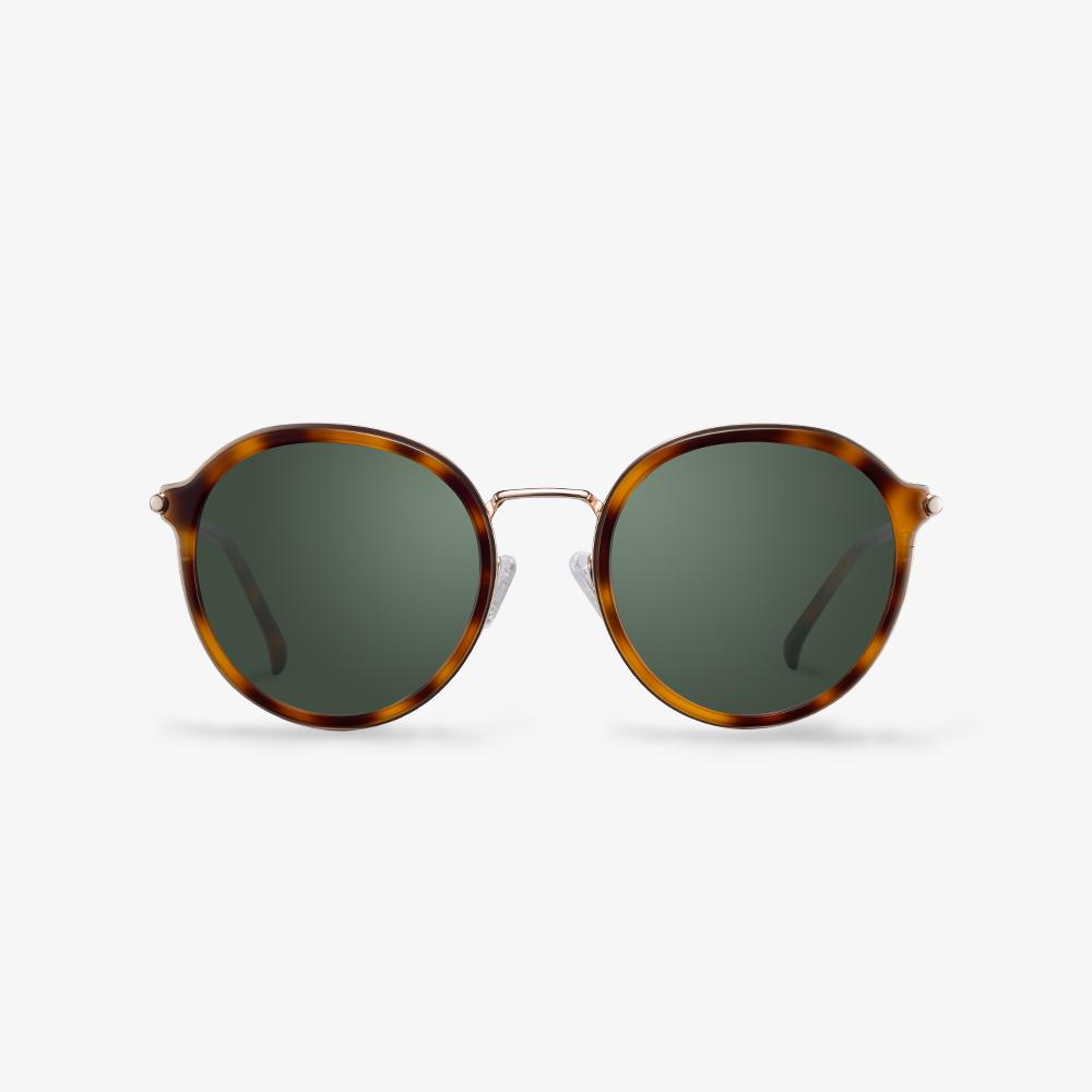 These round vintage sunglasses update your daily outfit. The light nose pads make you feel comfortable. The temples have exquisite tactile sensations. The fashionable bright metal is used as the ornament, adding a few individual elements. Tortoiseshell frames and mixed materials, the ornament of metallic elements add a sense of color and fashion, mysterious and elegant.