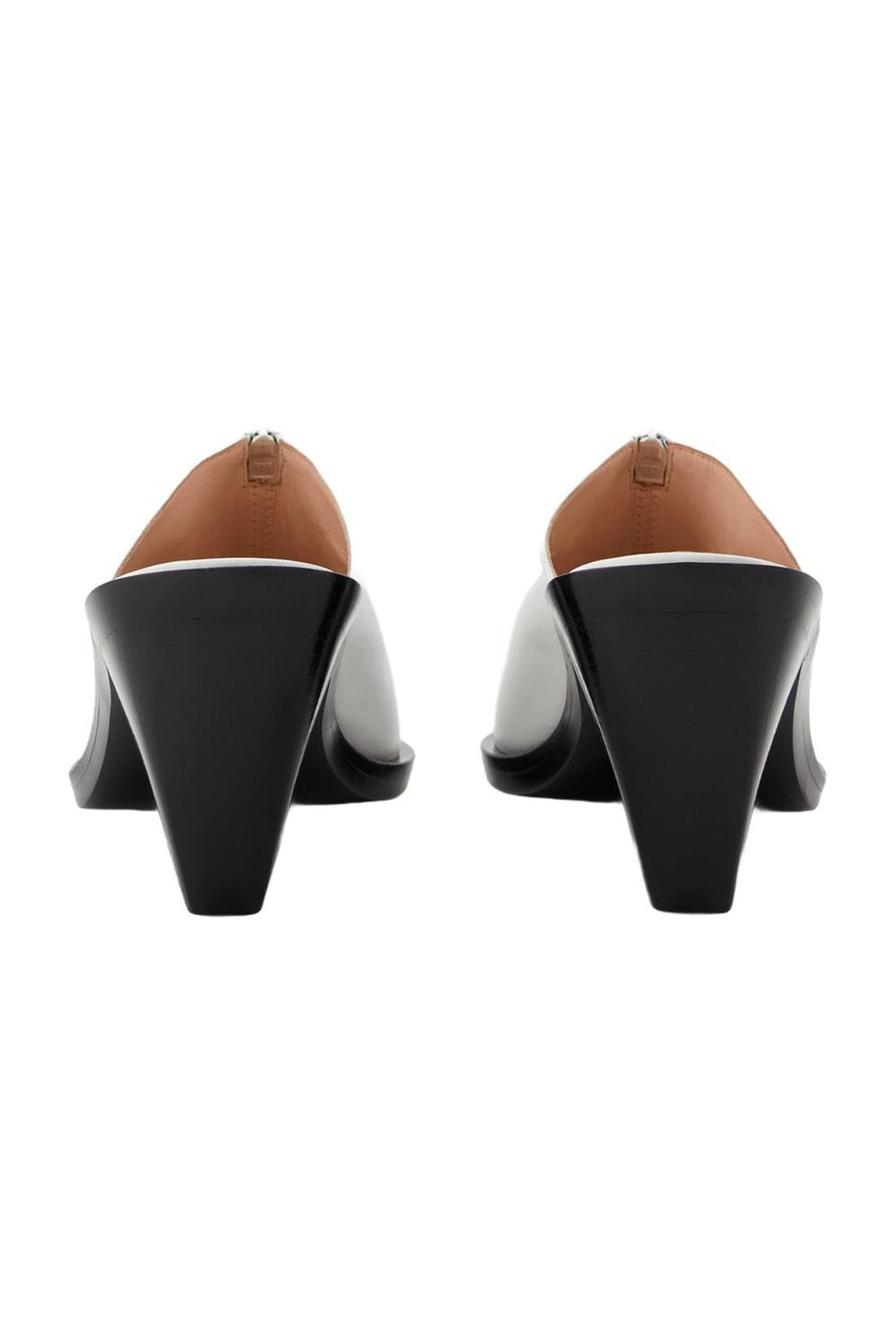 Mit ihrem schrägen Absatz und dem Reißverschluss an der Vorderseite ist dieses Paar Pantoletten Elleme ein spitzes Paar, das man in seiner Garderobe haben sollte. Tragen Sie sie zu einer weiten Jeans oder einem Longbob