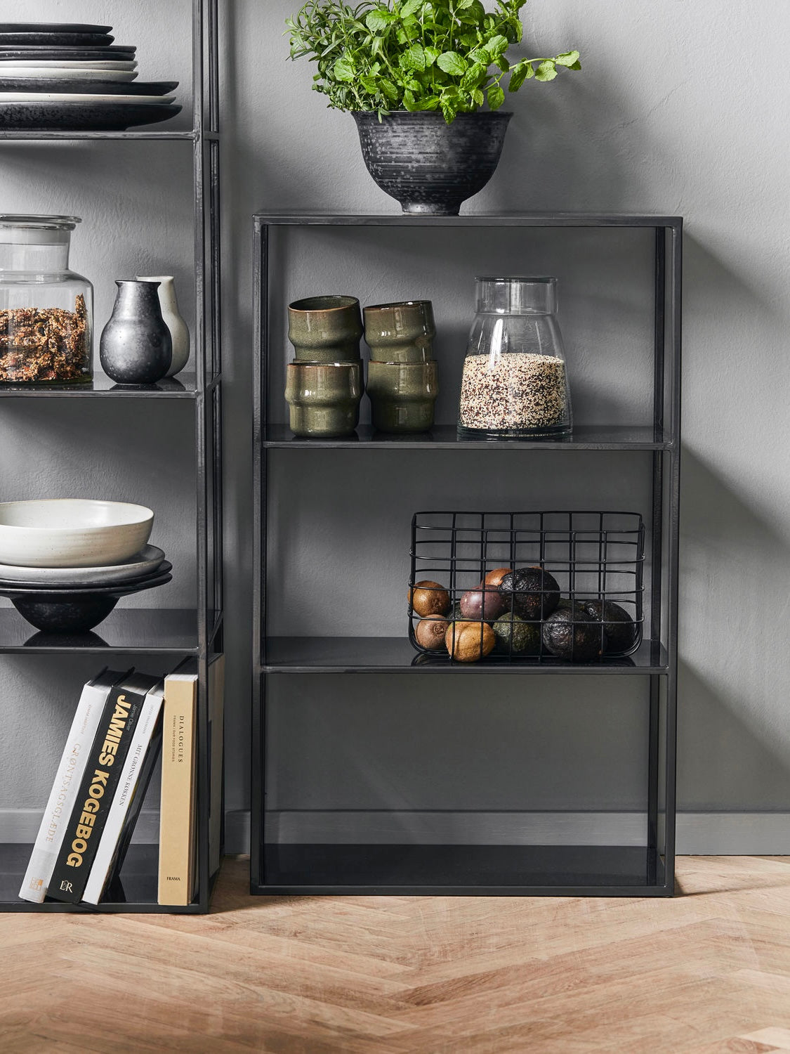 Egal ob du es in der Küche aufstellst oder im Wohnzimmer – dieses Regal richtet den Fokus auf das, was du hineinstellst. House Doctor hat Model B aus Stahl mit einem glatten und dunklen Finish designt. Der minimalistische Look sorgt dafür, dass es vielseitig einsetzbar ist und zu jedem Interior-Style passt. Es kommt ganz darauf an, wo du es aufstellst und wie du es verwendest. Die vier Regalbretter bieten dir jede Menge Stauraum. Verwende es im Wohnzimmer, um deine Lieblingsbücher, Deko-Objekte, Körbe und Aufbewahrungsboxen zu präsentieren. Oder stell es in die Küche, um den Raum optimal – und stylish – zu nutzen.