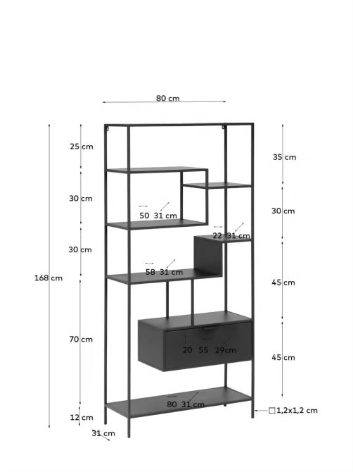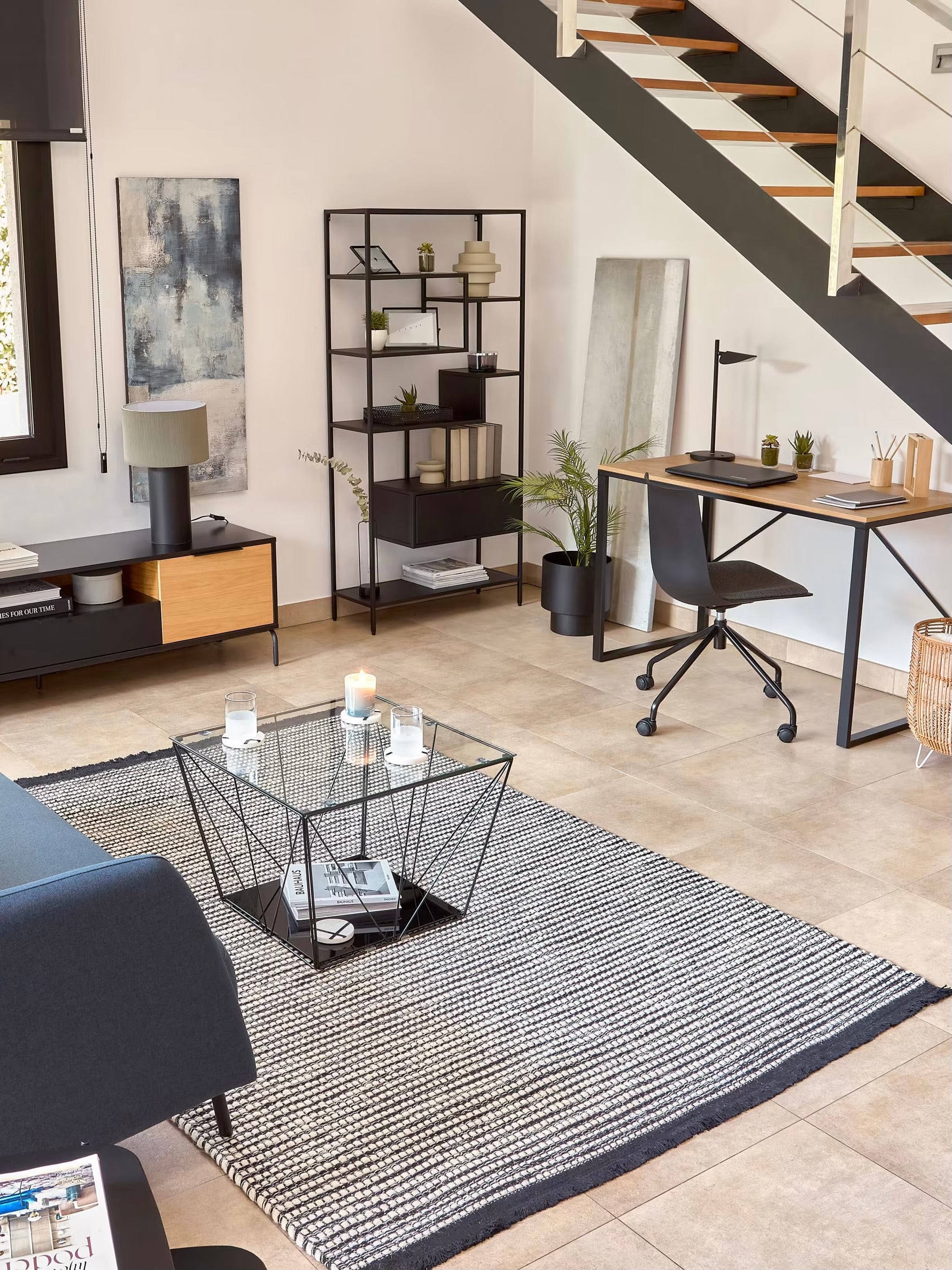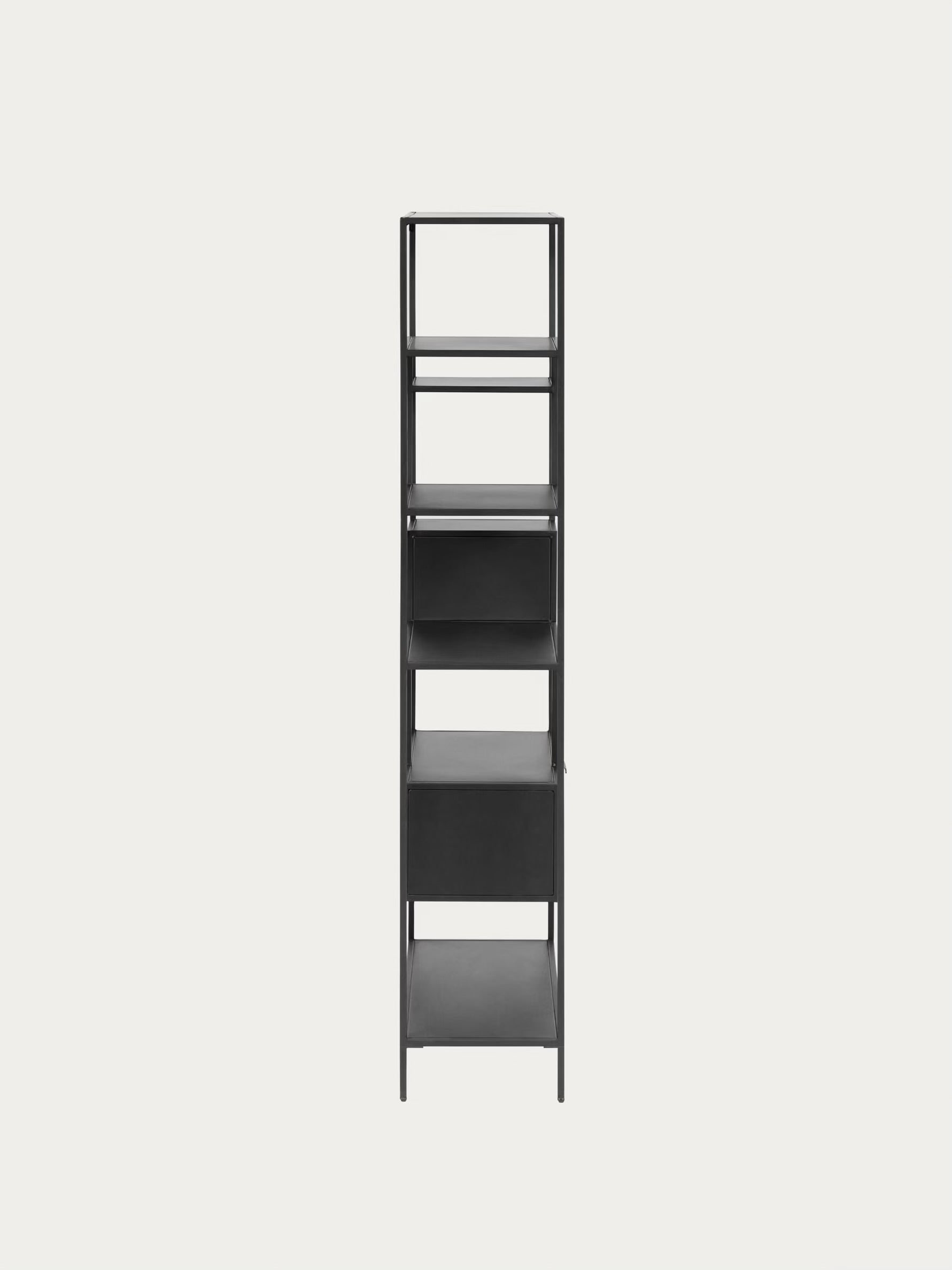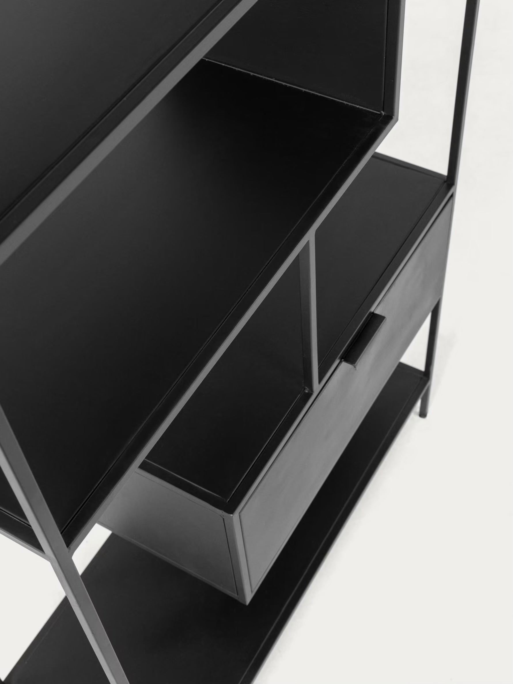 Ausgefallenes, handgefertigtes Eisenregal von Kave Home im nordischen Industrie Look. Der schwarz lackierte Stahl passt sich seiner Umgebung zurückhaltend an und ist dennoch ein echter Eyecatcher. Design und Funktionalität zu gleichen Teilen. Es fügt sich in jedes Ambiente, von klassisch bis modern. Jedes Teil ist ein Unikat.