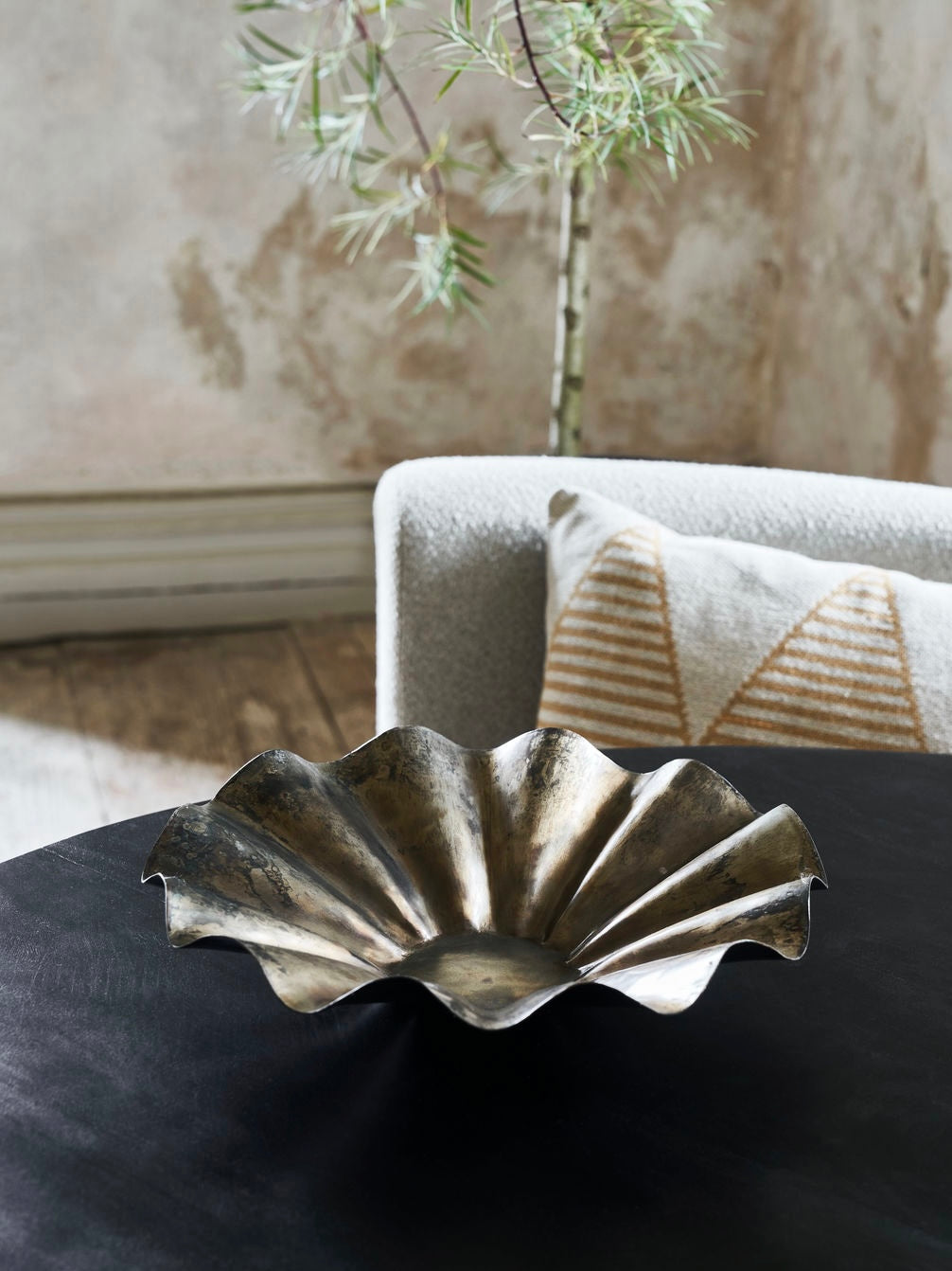 In der Schale Flood von House Doctor spielen ein roher industrieller Look und zeitlose Eleganz gekonnt zusammen. Die Oberfläche aus Eisen mit einem antikbraunen Finish präsentiert sich mit absichtlichen Unvollkommenheiten, um der Schale einen einzigartigen rustikalen Charme zu verleihen. Stell sie auf deinem Sideboard oder Beistelltisch auf und kombiniere sie mit ein paar schlanken Kerzenständern. Dieses Arrangement wird sicher einige Blicke auf sich ziehen.