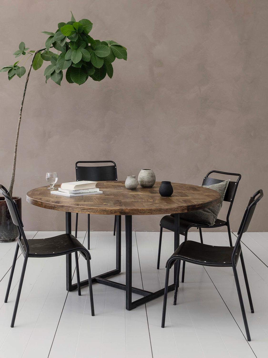 Gemütliche Abendessen mit der Familie, Freunden oder der/dem Liebsten sollten in schöner Umgebung genossen werden. Kant von House Doctor ist ein schöner runder Esstisch aus Holz. Die Beine des Tisches sind aus Metall gefertigt, sodass in Kombination mit dem Holz ein ganz exklusiver und rauer Ausdruck entsteht. Durch seine runde Formsprache verleiht Kant eine geborgene Atmosphäre und einen stilvollen Look. Der Esstisch bildet mit der dunklen Farbgebung einen spannenden Kontrast zu hellen Wänden und einer schlichten Einrichtung. Nutze den Tisch als Treffpunkt für die Familie, an dem die Erlebnisse des Alltags miteinander geteilt werden.