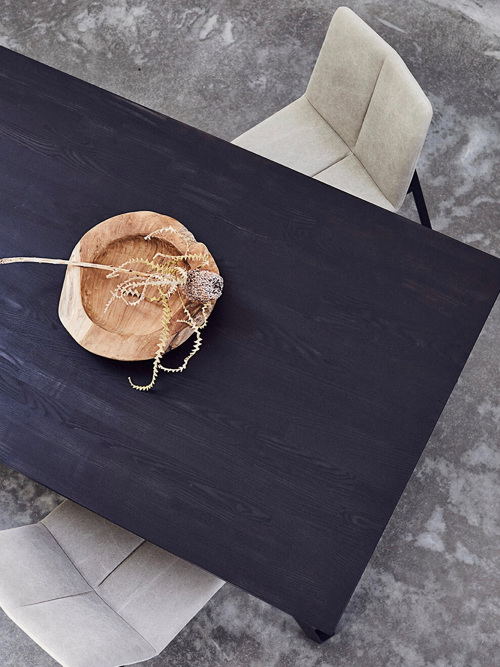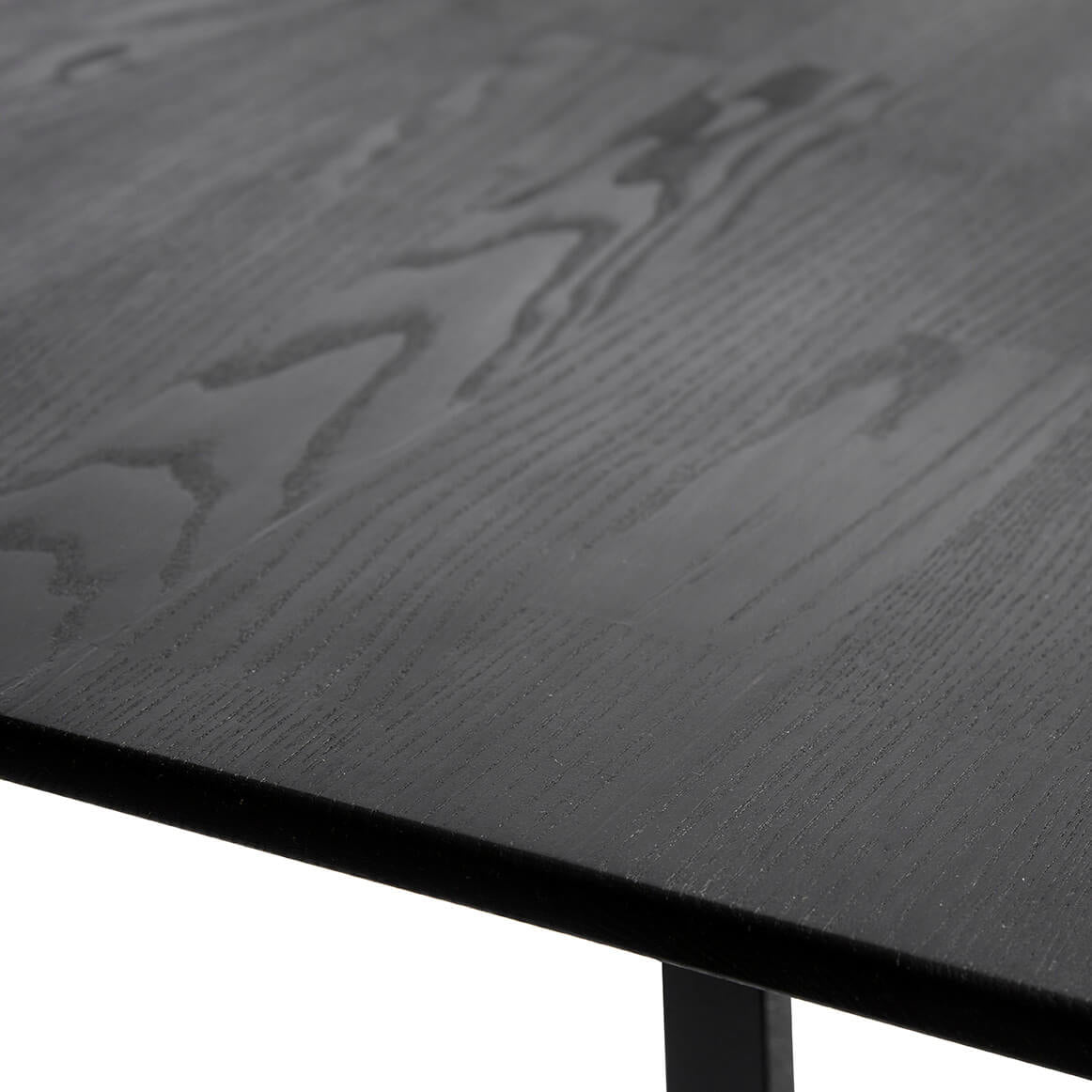 Esstisch aus geschwärztem Eschenholz mit schwarzem, pulverisiertem Stahlgestell. Die Tische aus der Serie Space wurden von dem dänischen Designteam Says Who entwickelt. Jedes Teil ist ein Unikat, farbliche Unregelmässigkeiten sind aufgrund des Naturmaterials möglich. Der Tisch bietet Platz für 10 Personen und kann bei Bedarf mit einer separat erhältlichen Platte um 2x50cm verlängert werden.