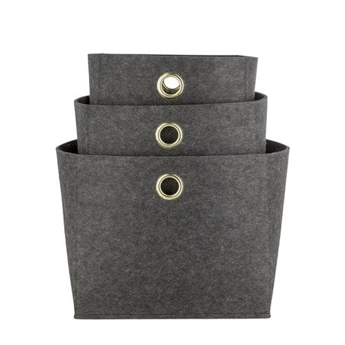 Praktischer Korb aus Filzmaterial. Schlichtes Design mit Halteringen aus Metall. Perfekt für die Aufbewahrung von Spielzeug, Wolldecken, Zeitungen, Feuerholz oder ähnlichem. In 3 Größen erhältlich.