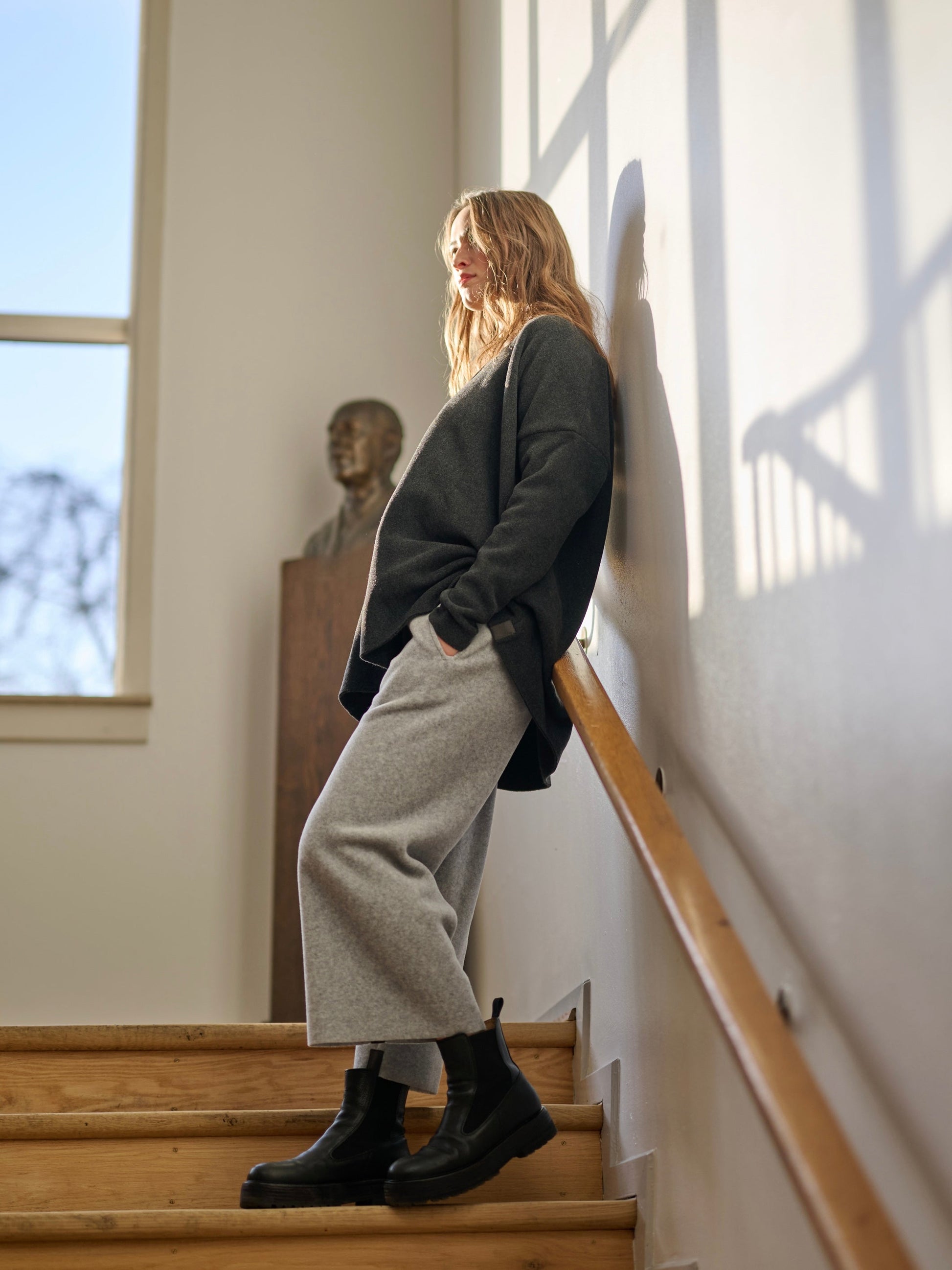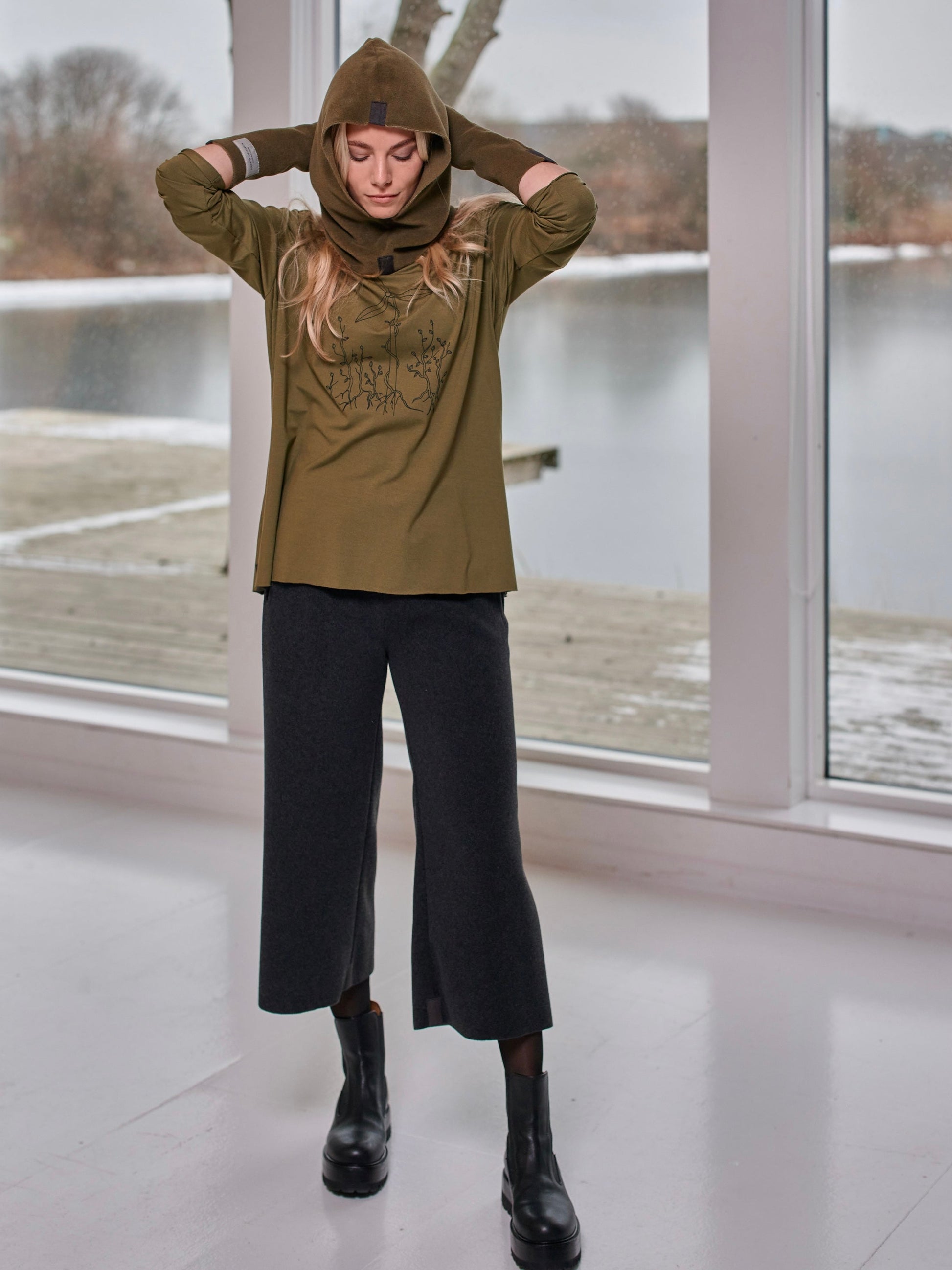 Gemütliche Jogginghose mit Bindeband und weiten Beinen im Palazzo Style. Spüre, wie angenehm sich das spezielle Fleece in diesem vielseitig tragbaren Design anfühlt. Du kannst die Hose zum Kuscheln auf der Couch oder aber auch zu einem entspannten Spaziergang tragen. Es gibt viele verschiedene Oberteile, die perfekt zu dieser Hose passen.