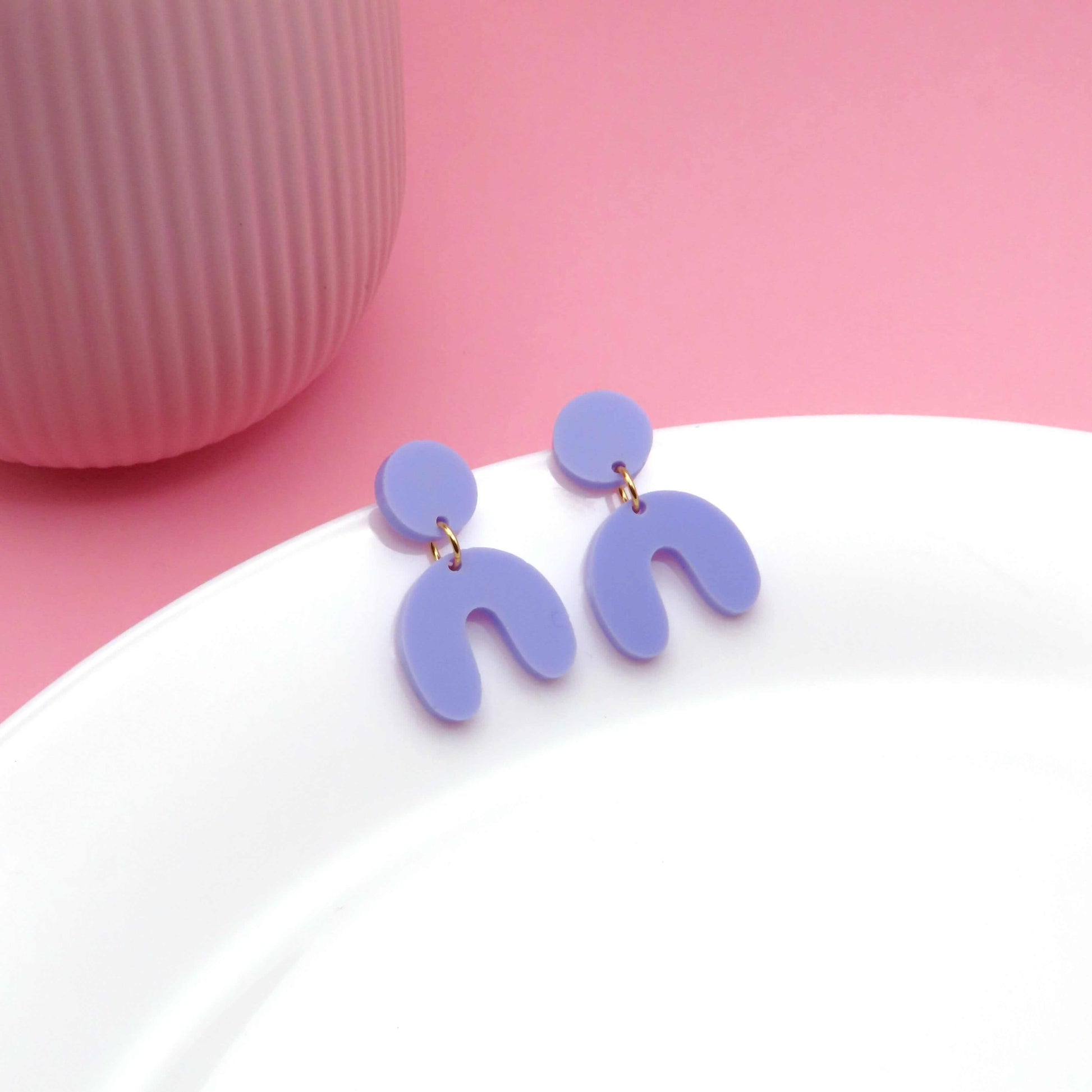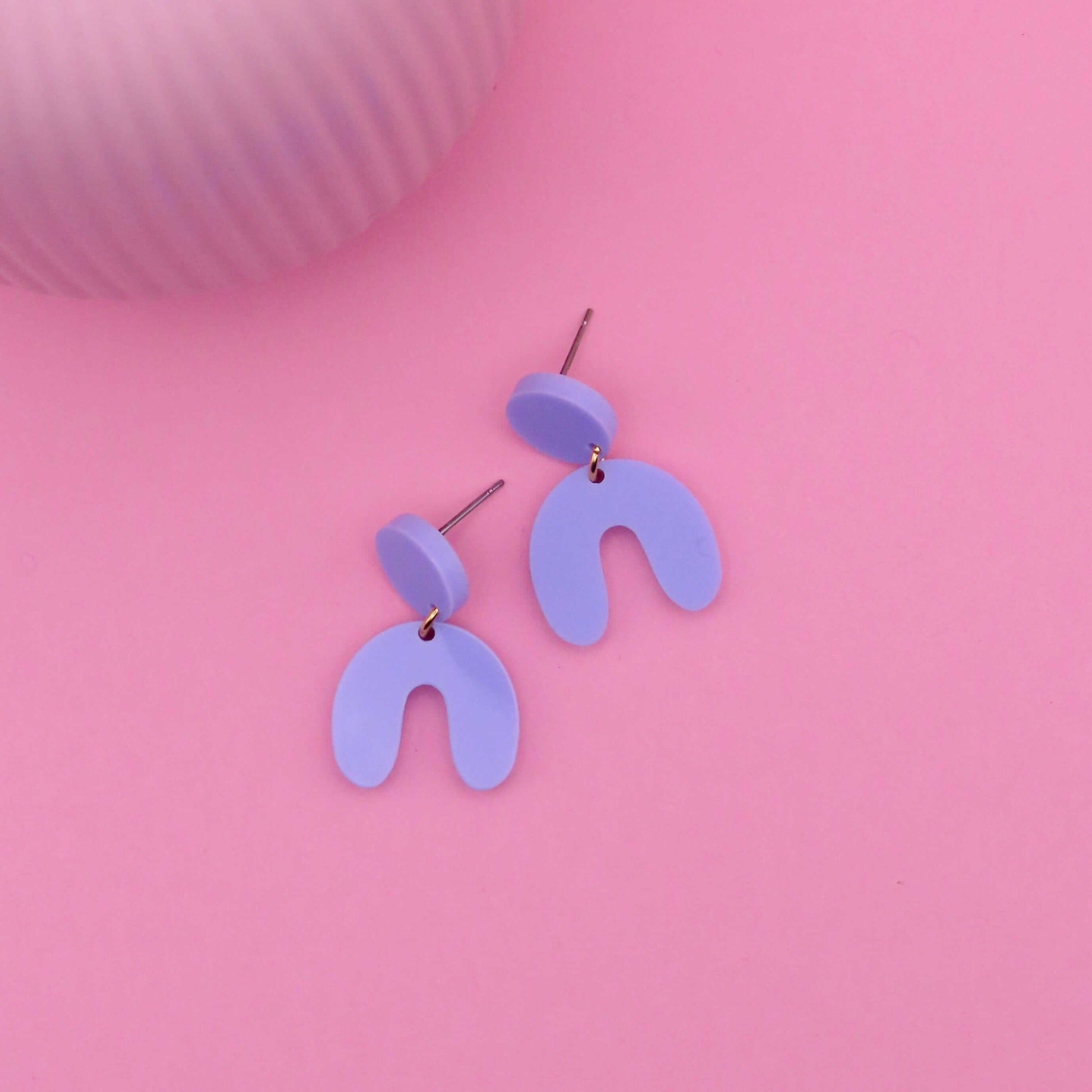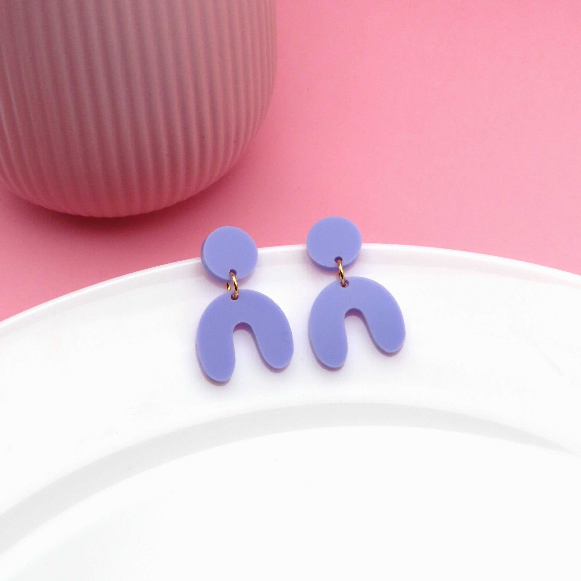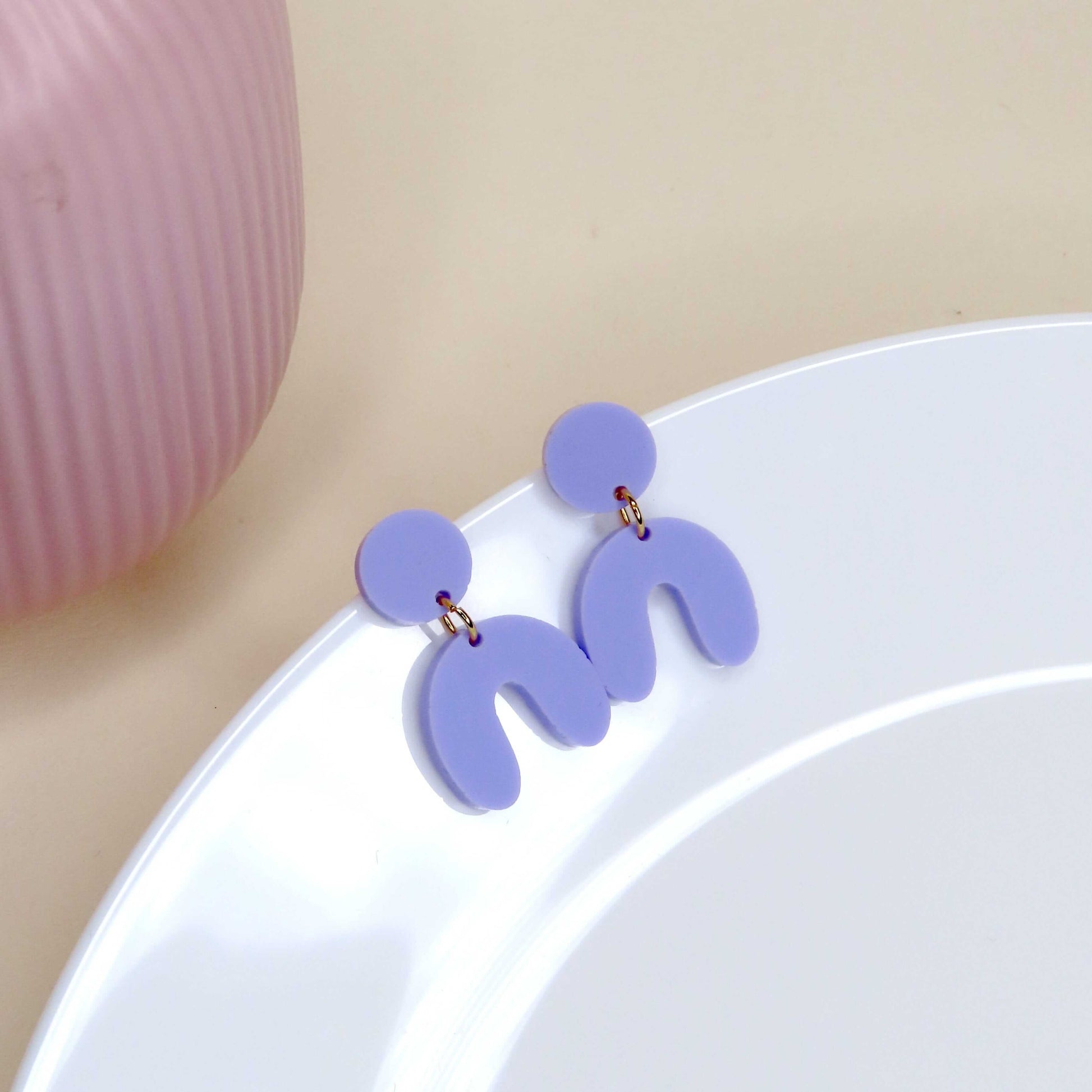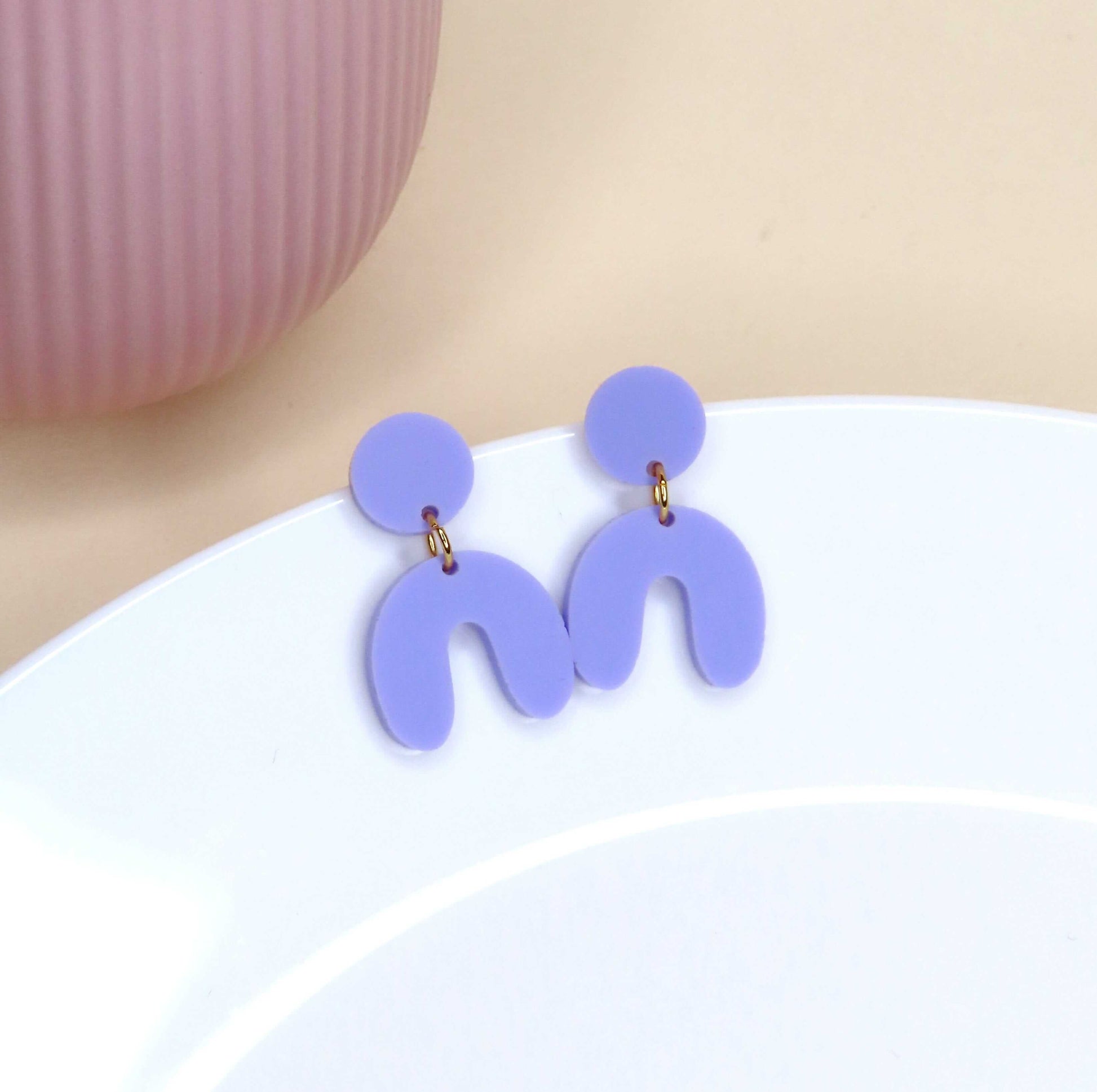 Zartes Flieder trifft modernes Design – unsere handgemachten Arch-Ohrringe bringen frischen Wind in dein Schmuckkästchen.