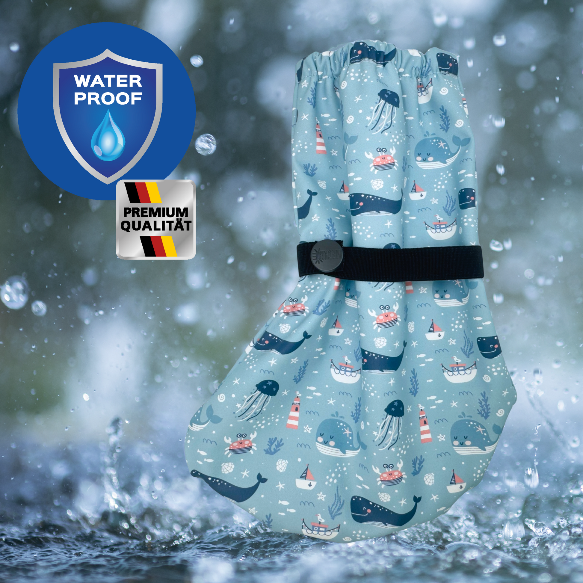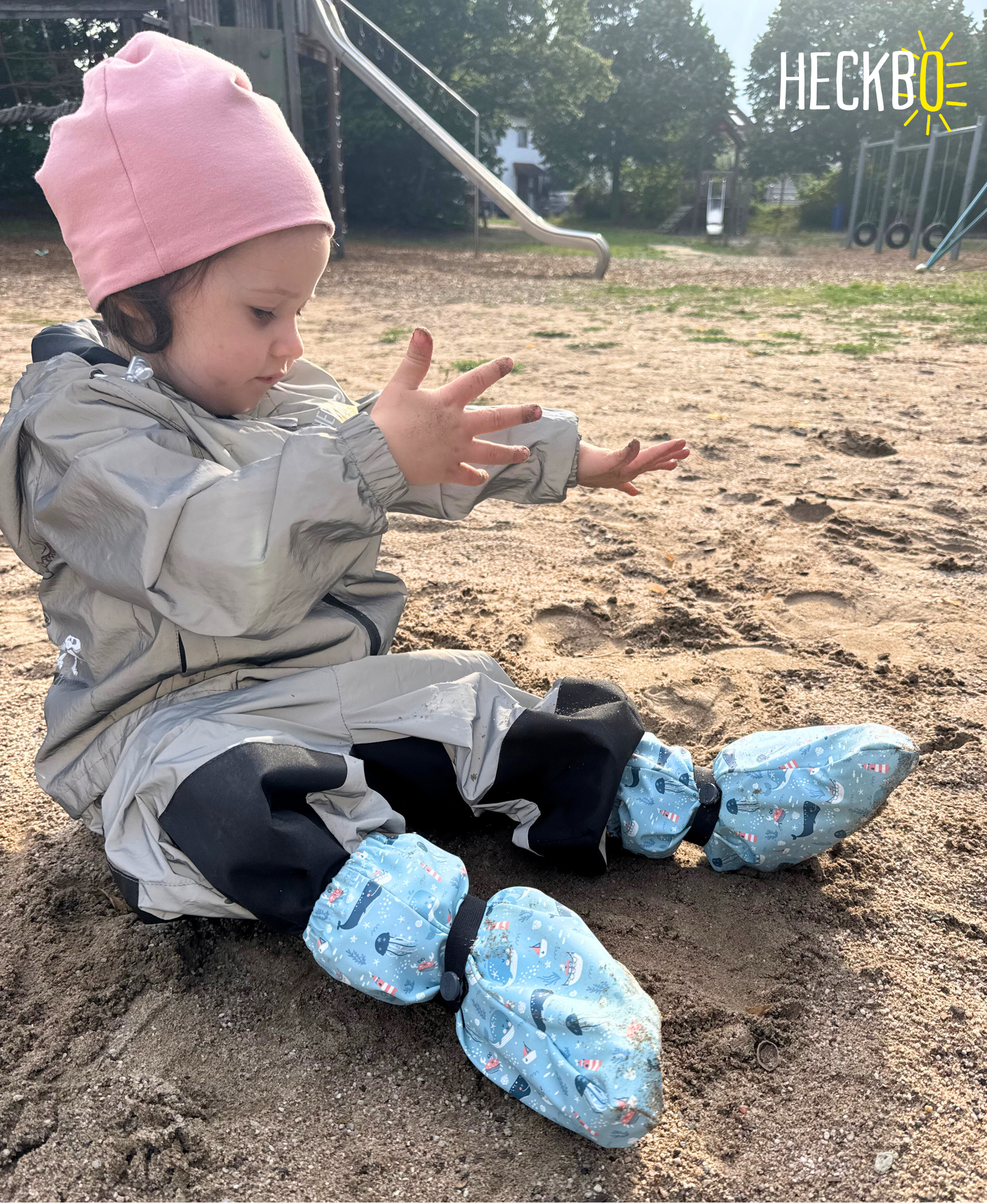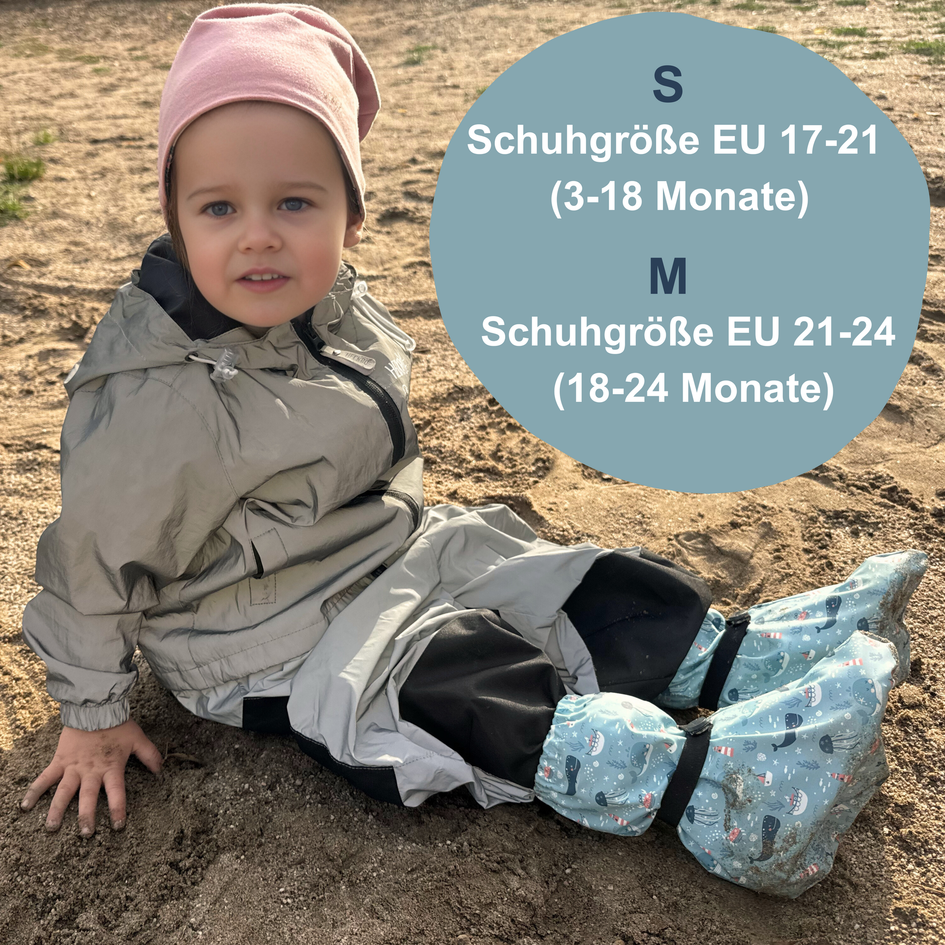 Die Füßlinge schützen zuverlässig vor Nässe und Wind – dank verschweißter Nähte und wasserabweisender Beschichtung. Ideal für nasse Spielplatzbesuche, Spaziergänge oder den Alltag bei schlechtem Wetter.