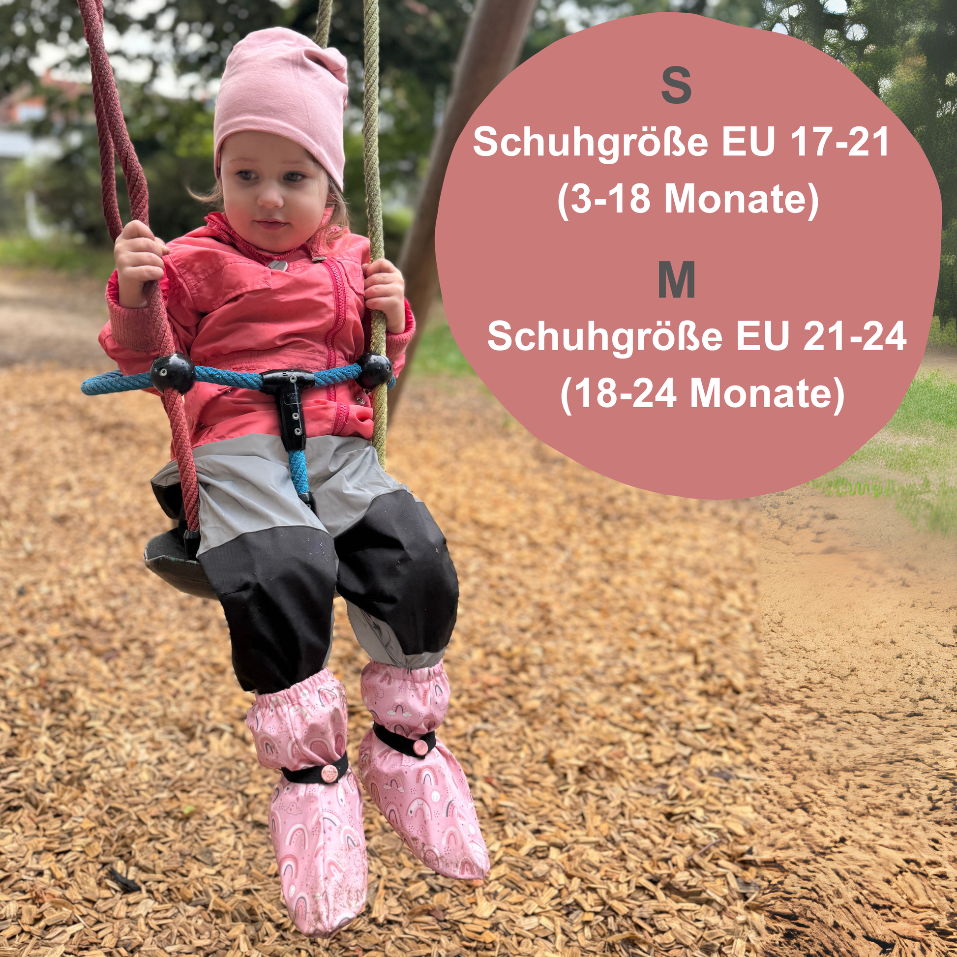 Die elastischen Schäfte garantieren einen festen Halt, auch bei aktiven Kindern. Die Füßlinge lassen sich leicht über Socken oder Schuhe ziehen und sitzen sicher – ideal für kleine Entdecker in Bewegung.