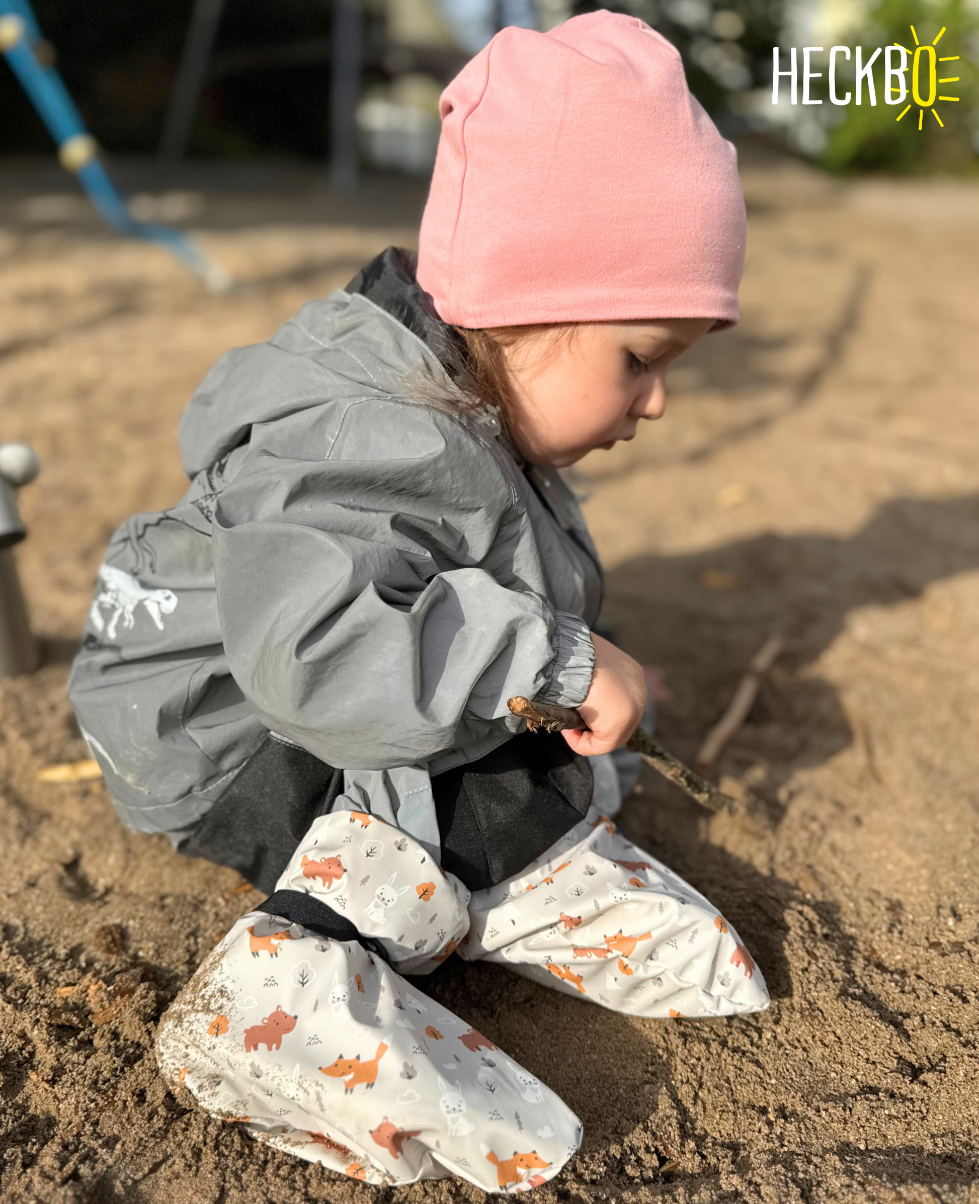 Die HECKBO Regenfüßlinge sind in zwei praktischen Größen erhältlich: Größe S für Babys von ca. 3–18 Monaten (Schuhgröße 17–21) und Größe M für Kleinkinder von ca. 18–24 Monaten (Schuhgröße 21–24). So finden Eltern ganz einfach die passende Größe für jede Entwicklungsphase.
