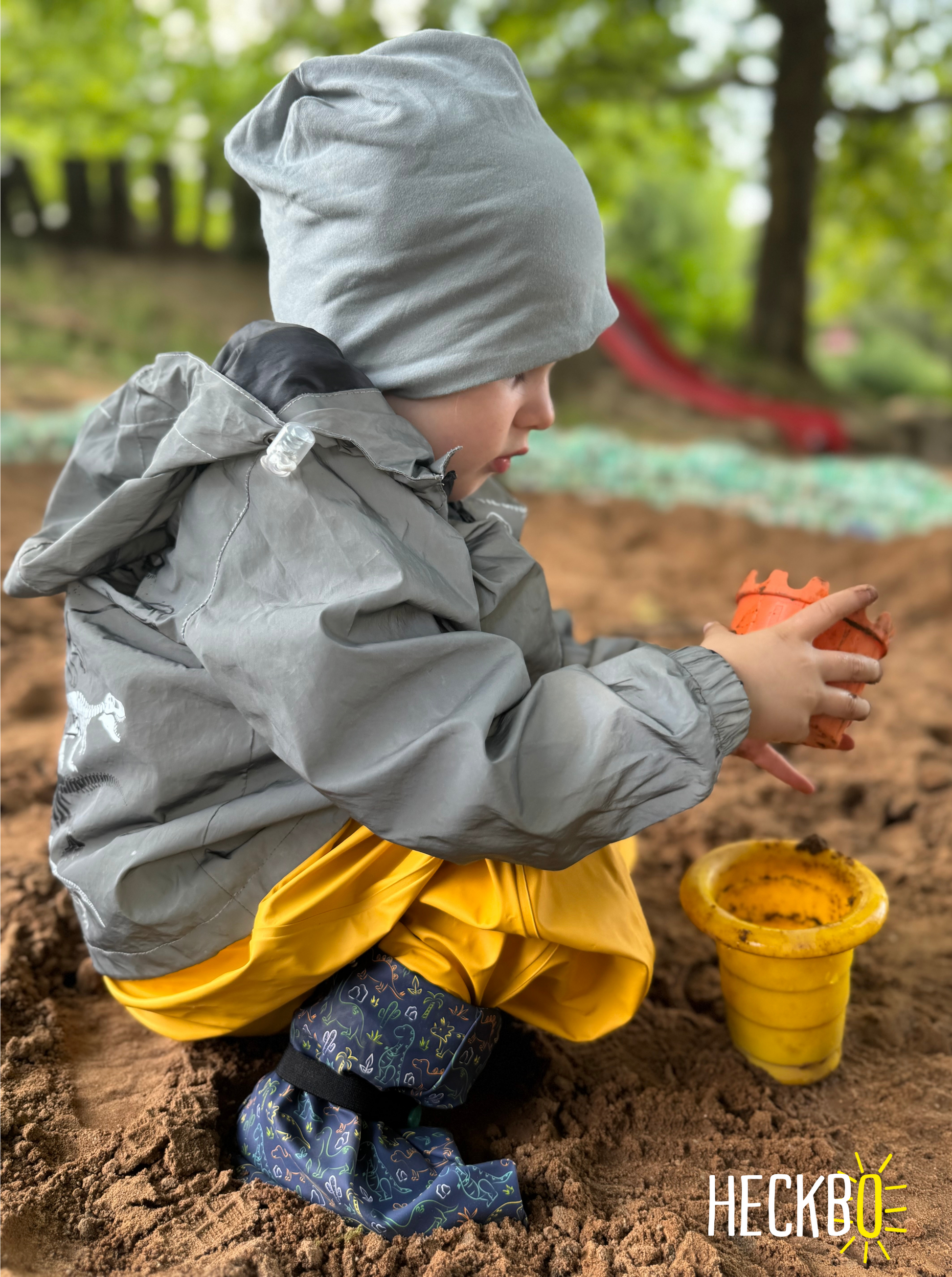 🔒 ZUVERLÄSSIGER SCHUTZ FÜR KLEINE FÜSSE: Einfach über Schuhe oder Socken ziehen – der flexible Gummizug am Schaft sorgt für einen sicheren Sitz, ohne zu verrutschen.