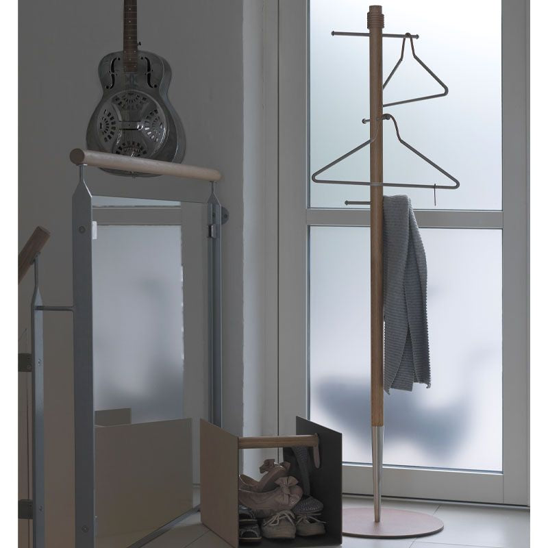 PENCIL ist ein minimalistisches Designmöbel, das von den skandinavischen Trends inspiriert ist und sich auf Details konzentriert. Der Garderobenständer PENCIL wurde vom traditionellen Bleistift inspiriert und verfügt über ein elegantes Design mit funktionalem Charakter als Kleiderständer. Der elegante Stiel aus wunderschöner Eiche mit Stahldetails befindet sich auf einer stabilen Aluminiumplatte, die mit strapazierfähigem recycelten Leder überzogen ist. Die Spitze ist mit einer Lederkordel in der gleichen Farbe wie die Fußplatte gekonnt umschlungen. Die Herstellung findet in spezialisierten Fertigungsstätten in Dänemark statt.
