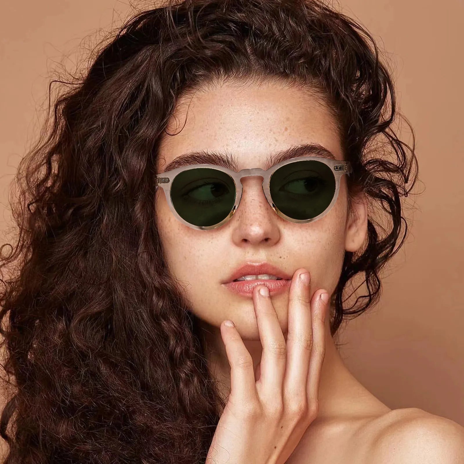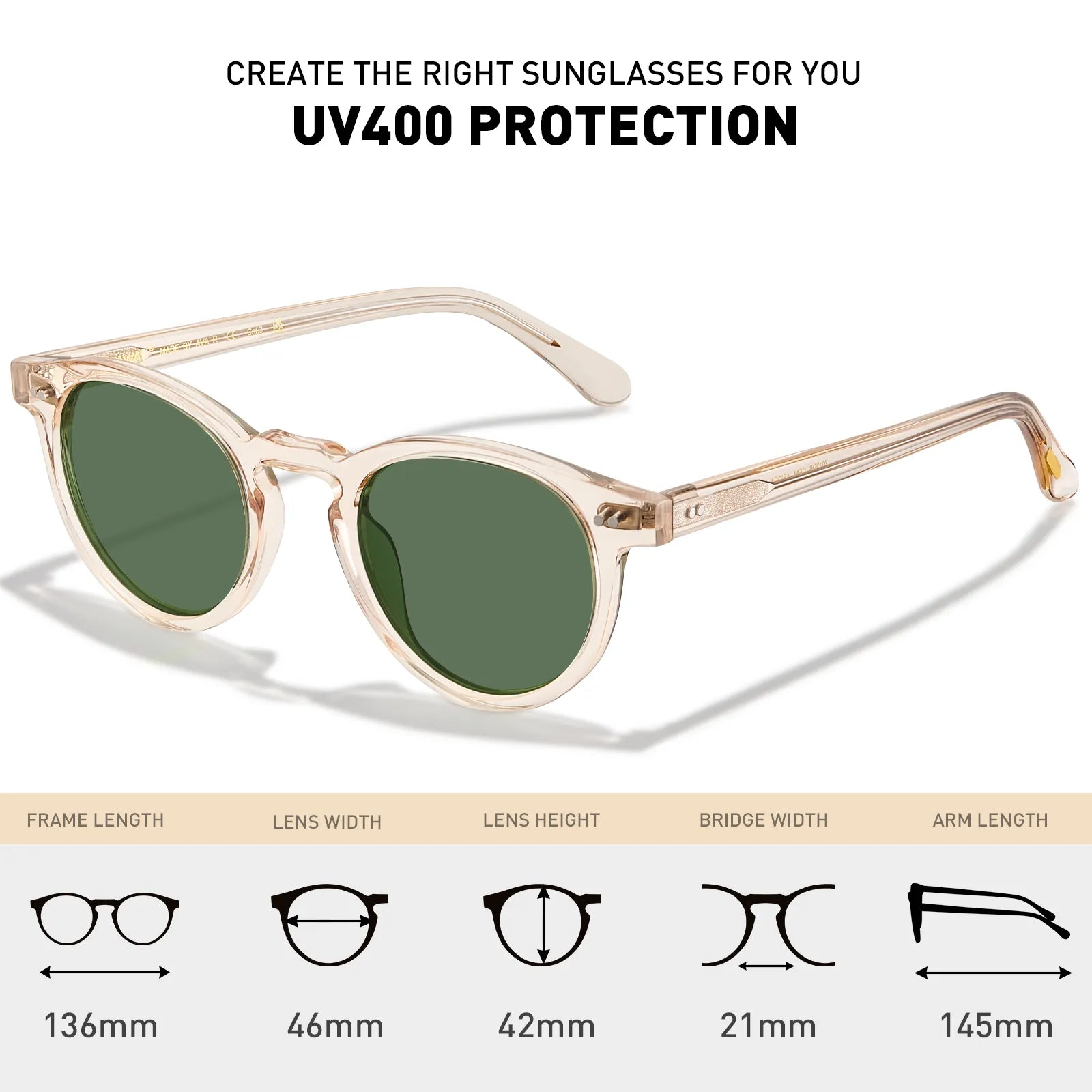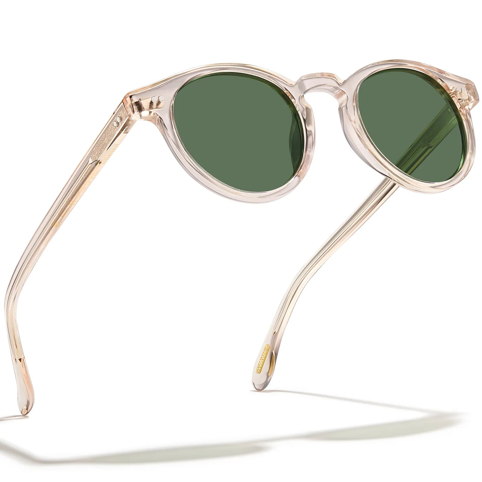 The fierce Translucent Yellow shows the fashion sense of your serious attention to detail. The stylish full-rim round sunglasses are made of high-quality acetate, and the corners and temples are decorated with double rivets. They are perfect for showing an educated and energetic appearance.