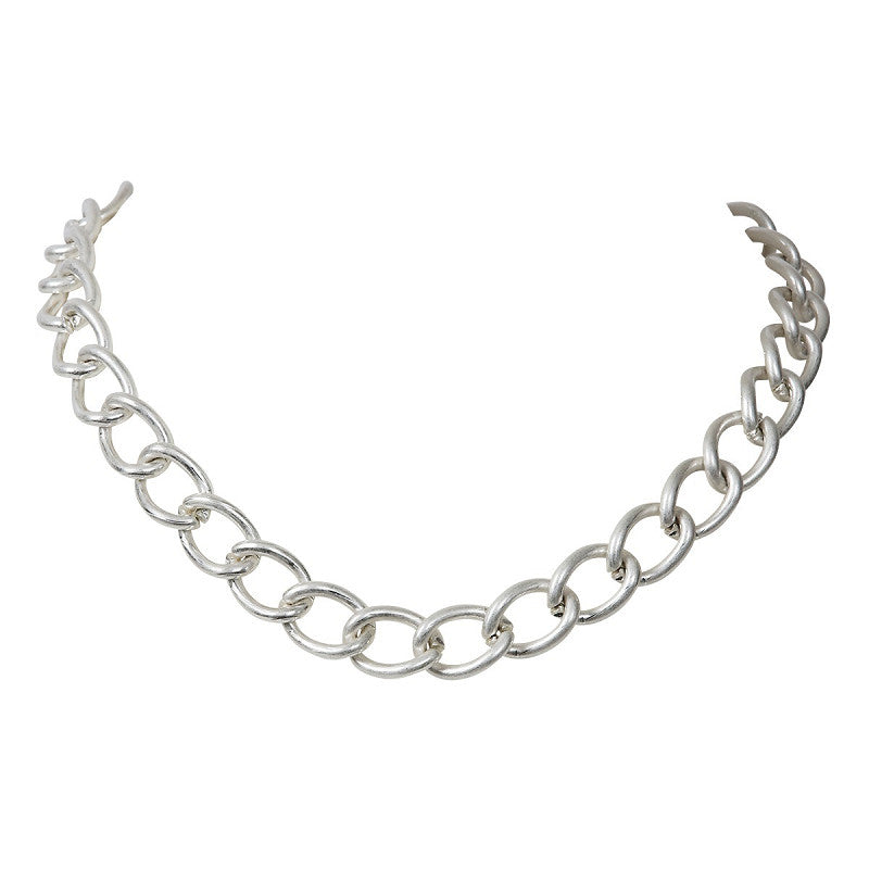 Effektvolle Gliederhalskette mit ovalen Metallgliedern aus veredeltem Metall. Die Kette ist in der Länge verstellbar.