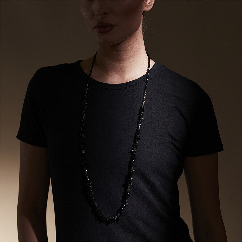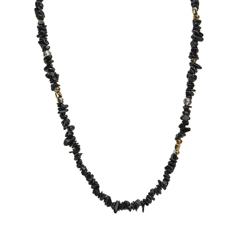 Dekorative Halskette in einem Mix aus Muschelsteinen und unterschiedlichen Glas- und Metallelementen. Auch mit anderen Perlenketten zu kombinieren. Nickelfrei.