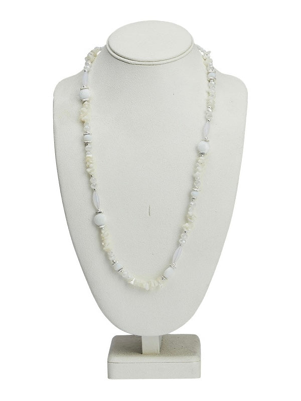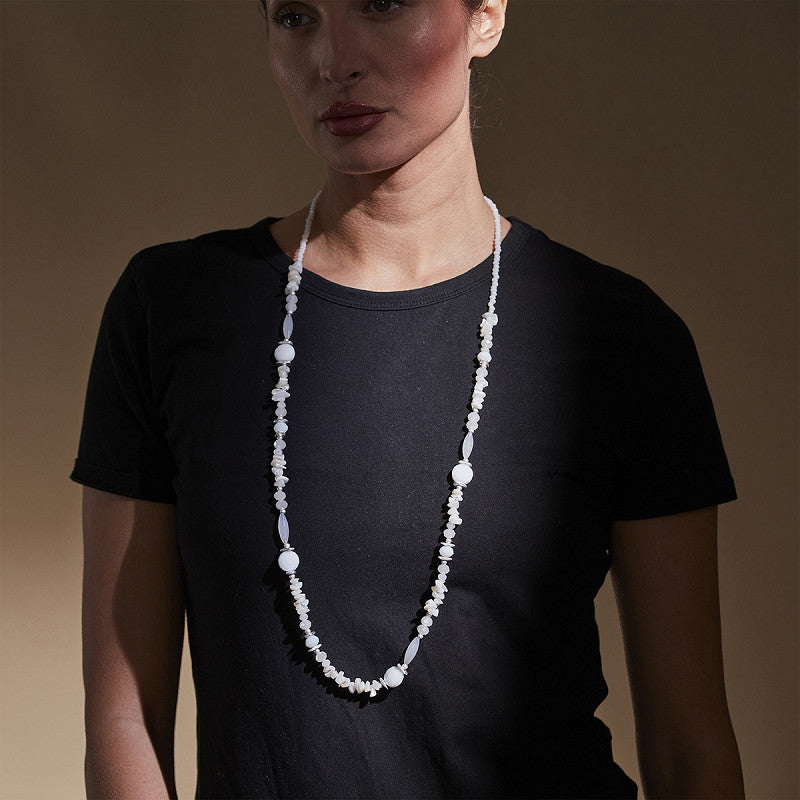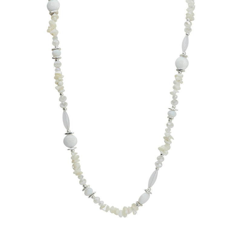 Dekorative Halskette in einem Mix aus Süßwasserperlen und unterschiedlichen Ziersteinen und Perlen. Auch mit anderen Perlenketten zu kombinieren. Nickelfrei.