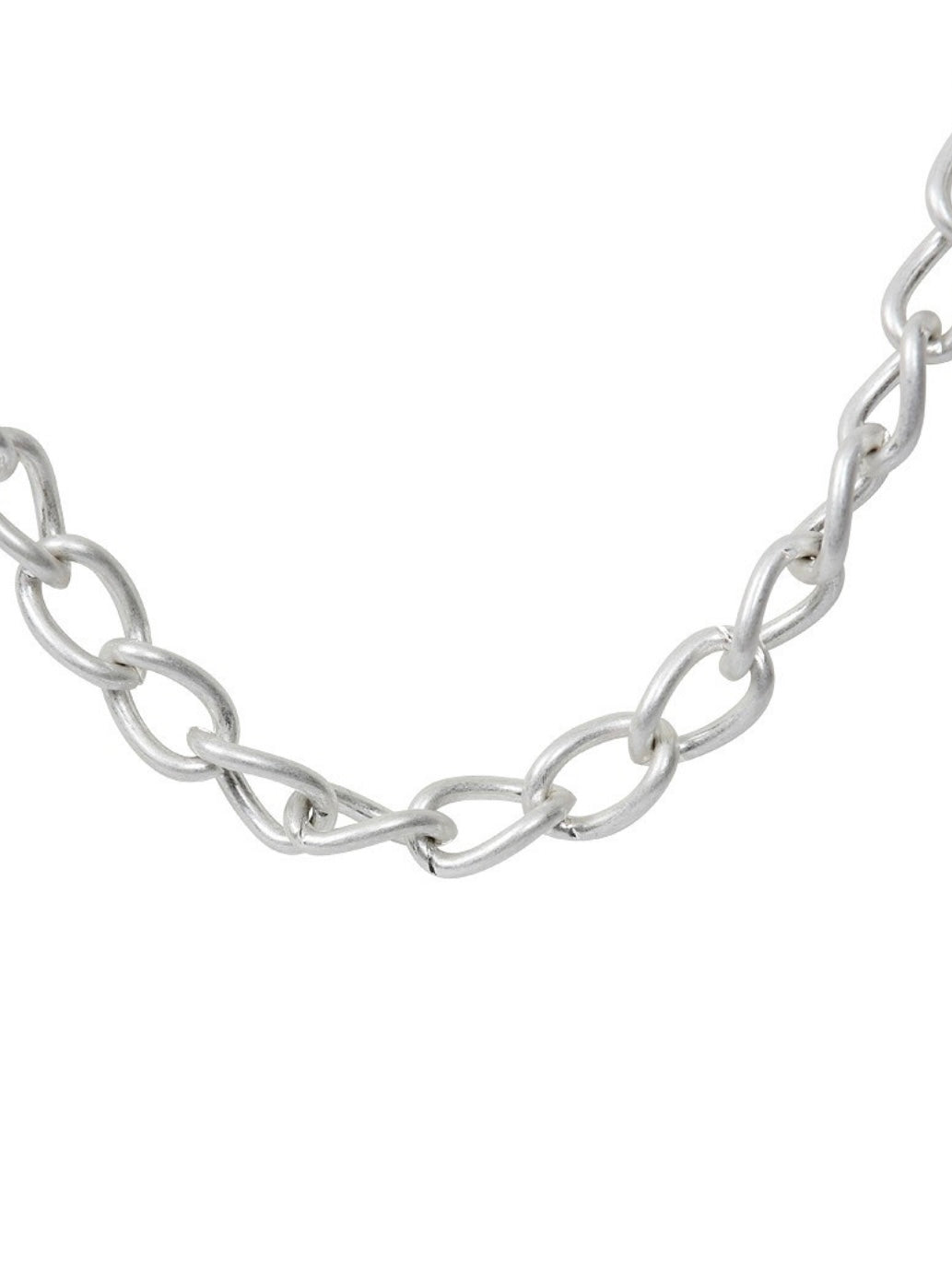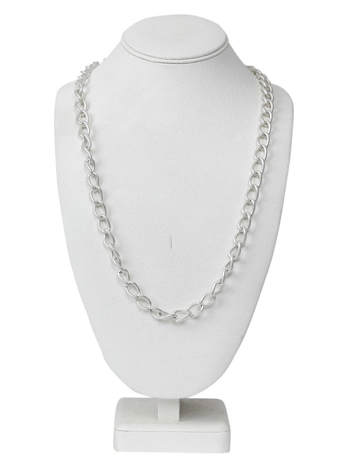 Effektvolle lange Halskette mit Metallgliedern aus Messing. Die Kette ist in der Länge verstellbar.