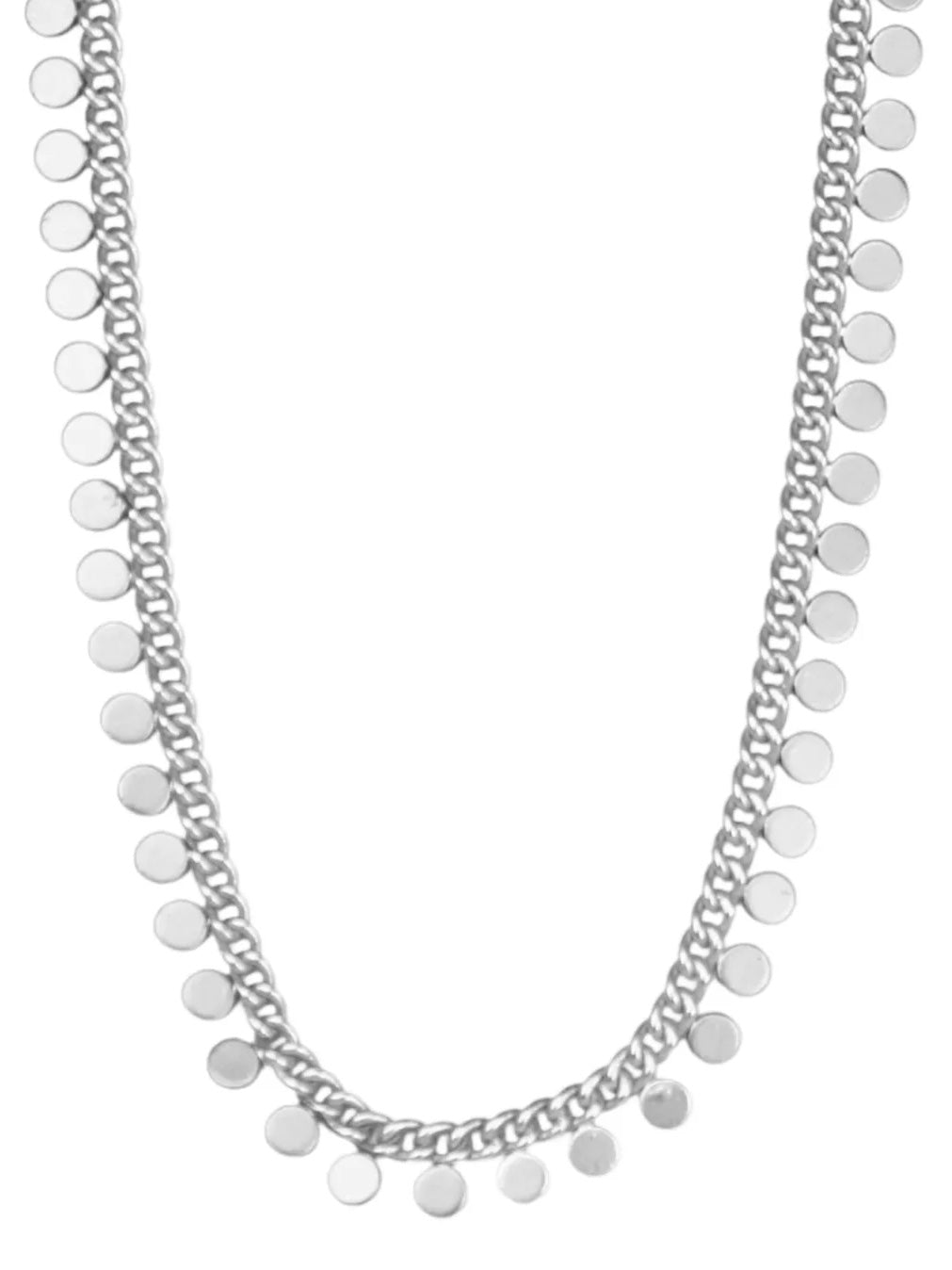 Effektvolle, kurze Halskette mit vielen matt vergoldeten oder versilberten, kleinen Plättchen.